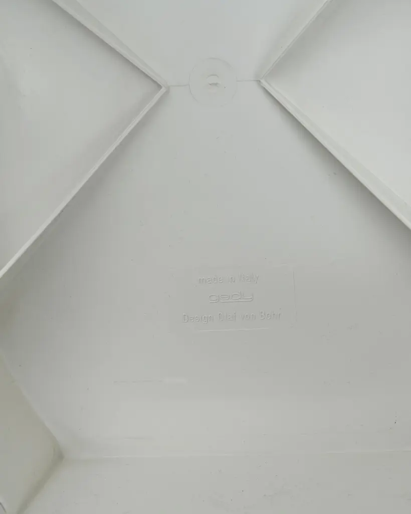 16” high x 16.5” wide x 10.5” deep Space Age 4-Legged Stool or Side Table by Olaf von Bohr for GEDY. Made in Italy. Four available and sold separately. Each have light wear consistent with age and use. Legs can be removed for easier shipping. 7 lbs. each