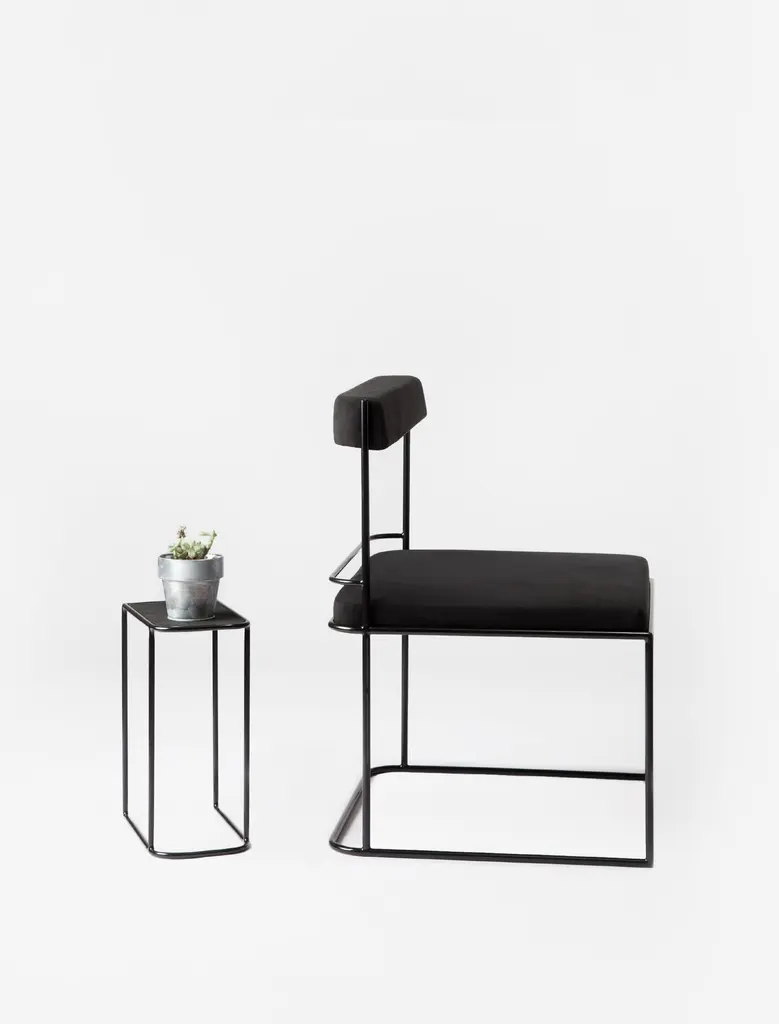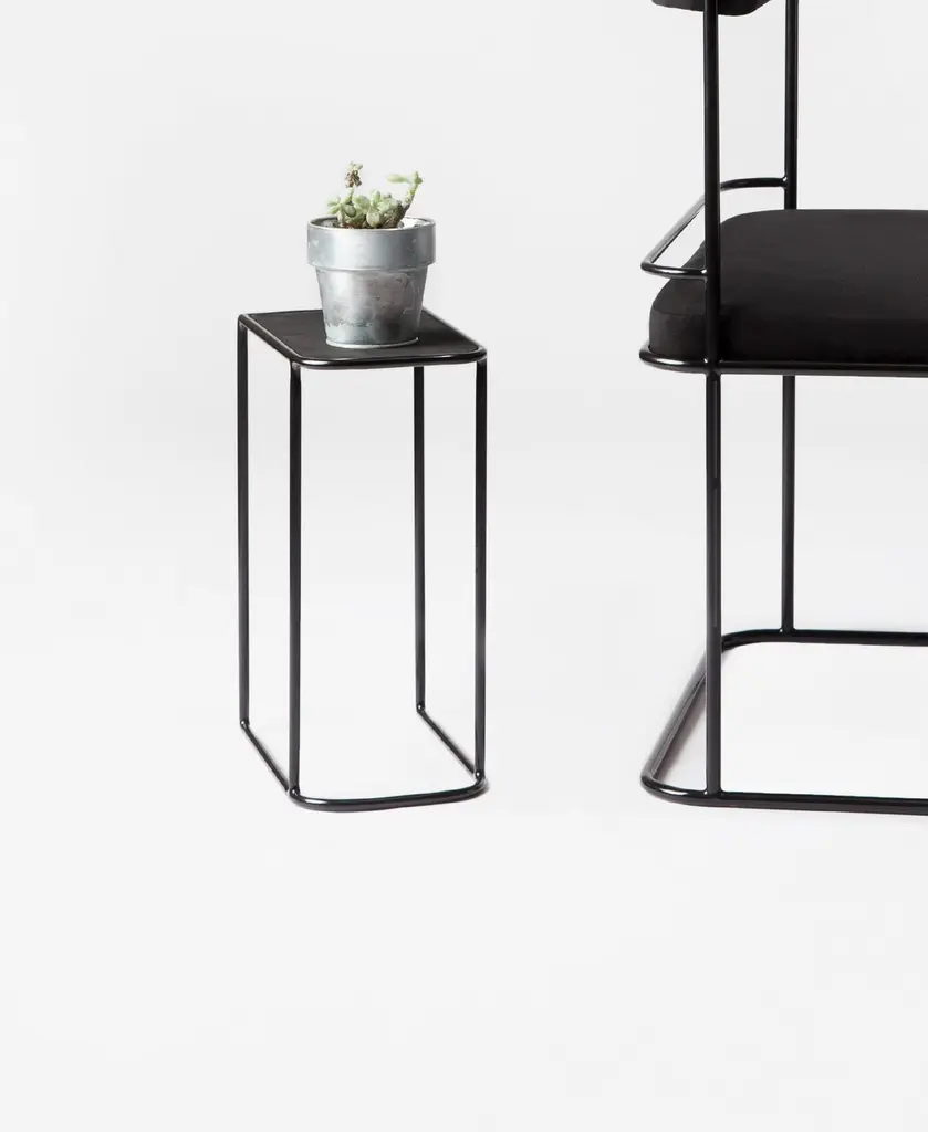 Frame side table by Jialun XiongDimensions: 6.5”W x 11”D x 14.5”H inchMaterials: Metal, Suede.COM/COL and custom size option available “I have an aptitude for exploring the nuances of infinite combination of materials. I’m always carefully curated landscape design stories by texture, light/shadow and negative space. “.
