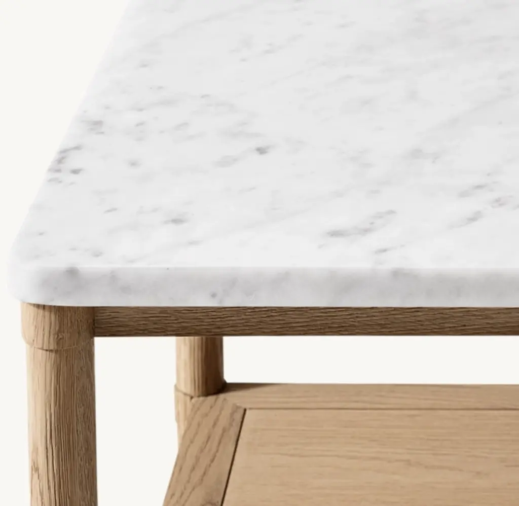 A contemporary take on classic French furnishings of the mid-19th century, the refined François collection is handcrafted from European white oak, wire brushed to reveal the wood's rich grain. Characterized by a delicately veined Italian Carrara marble top, the table's rounded, tapered legs soften the clean-lined silhouette.SHOP THE ENTIRE COLLECTION