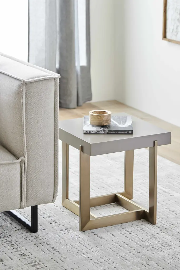 Collection: Frankleben Colors: Camel, Medium Gray Material: Top: Manufactured Wood,Base: Stainless Steel Styles: Contemporary Made In: China