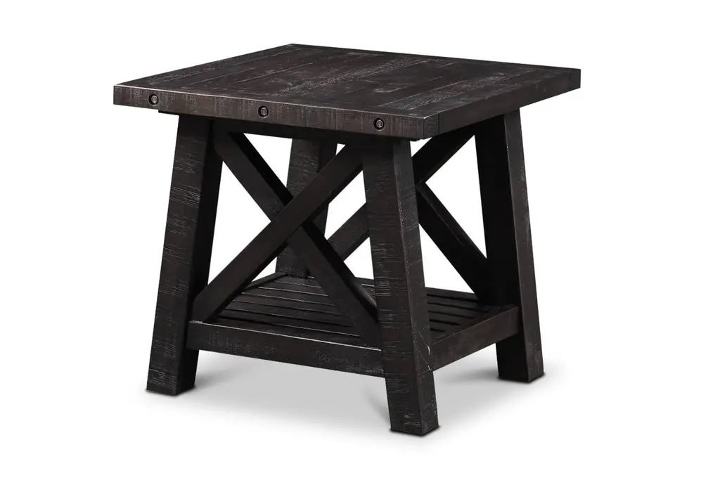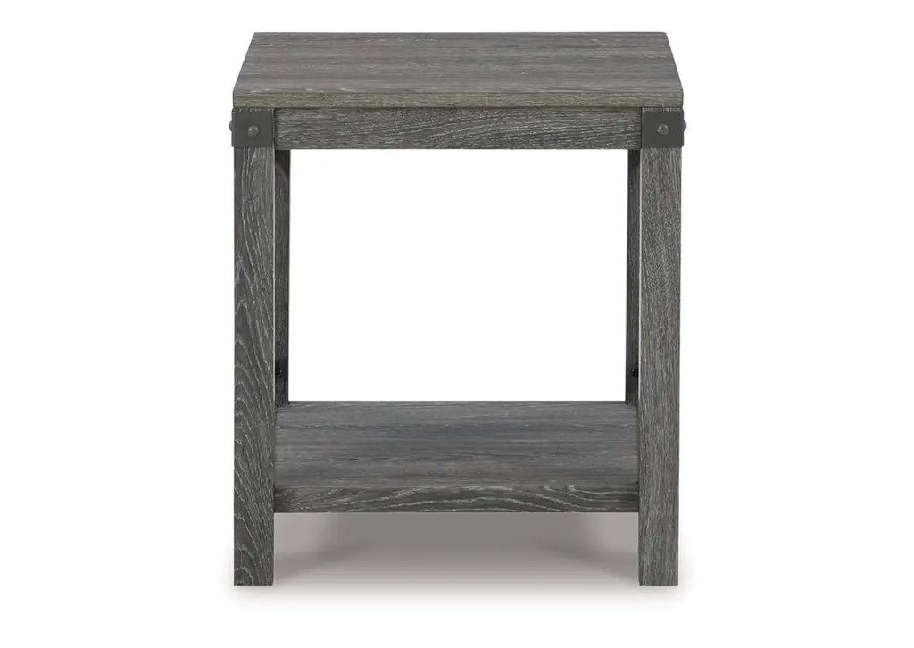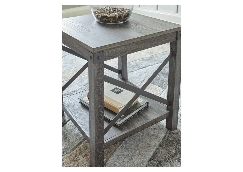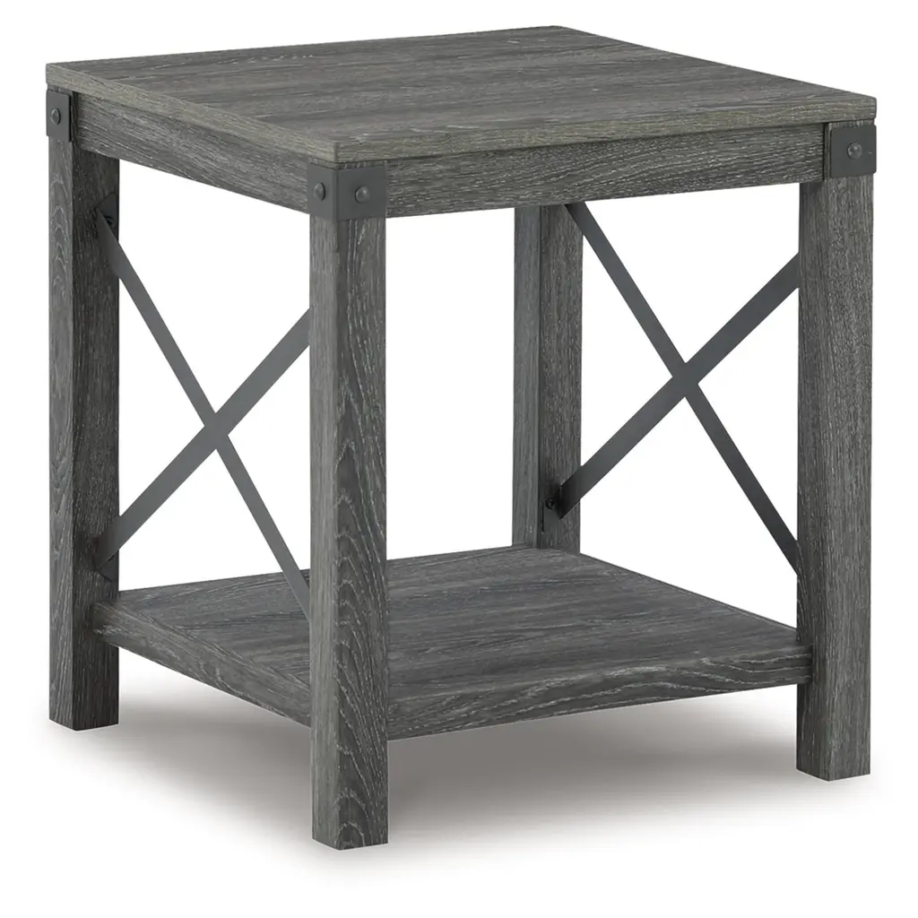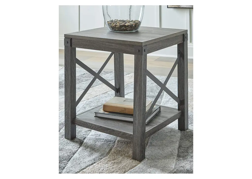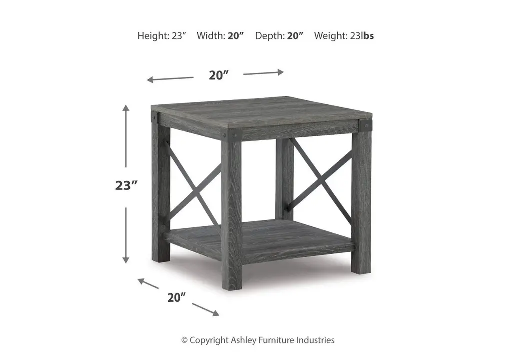 Open the door to modern farmhouse style with the Freedan square end table. The beautiful woodgrain look and classic crossbuck metal accents are a cool touch, while the lower shelf provides surface space for fashionable home accessories. Weight 27.000 lbs. (12.15kgs.)