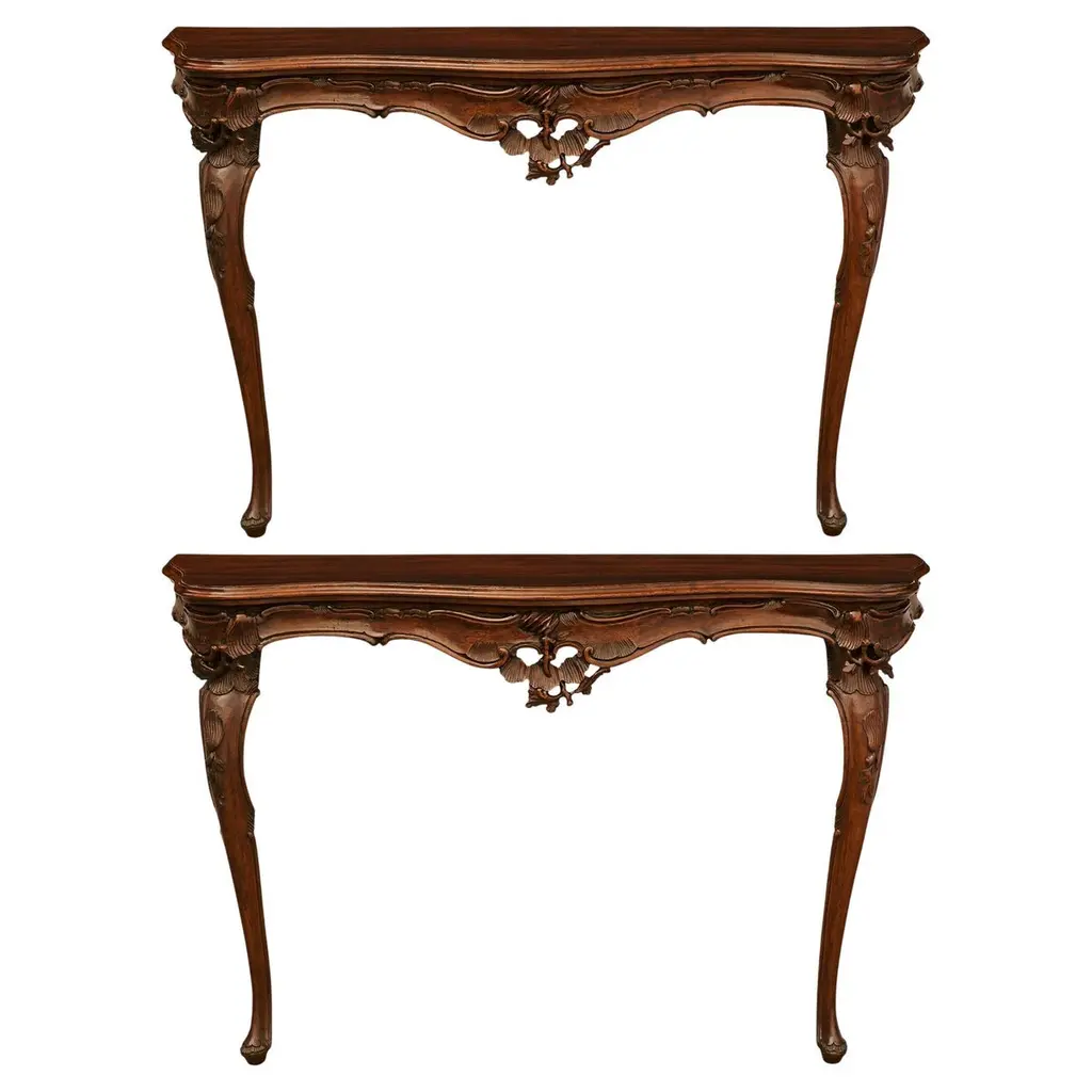 The characteristic indulgence distinguishing French Art Nouveau characterizes this exceptional side table, minutely reproduced from an 1880-1915 design by Emile Gallè. Joined by a stretcher, the slender legs boast a minutely carved design of strong visual charm, an effect emphasized by the striking floral motif inlaid within the top by juxtaposing exotic wood types.