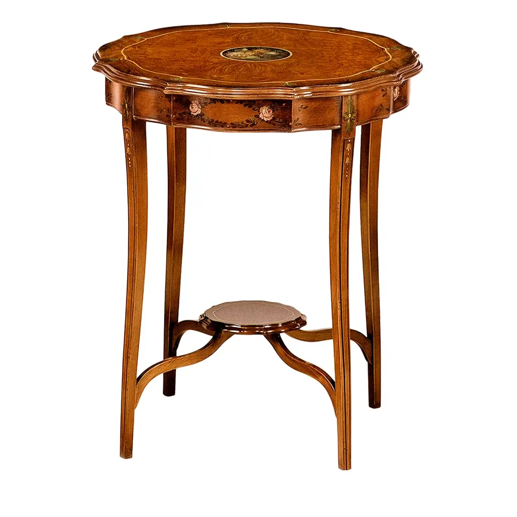 This singular side table is an impeccable reproduction of an authentic French Art Nouveau designed by Emile Gallè, bringing back the cabinetmaking mastery between 1880 and 1915. Sculptural legs, each branching out in two feet and three elements headed upwards, support the top, stupefying in its minute inlaid motif combining prized wood types in assorted hues and grains.