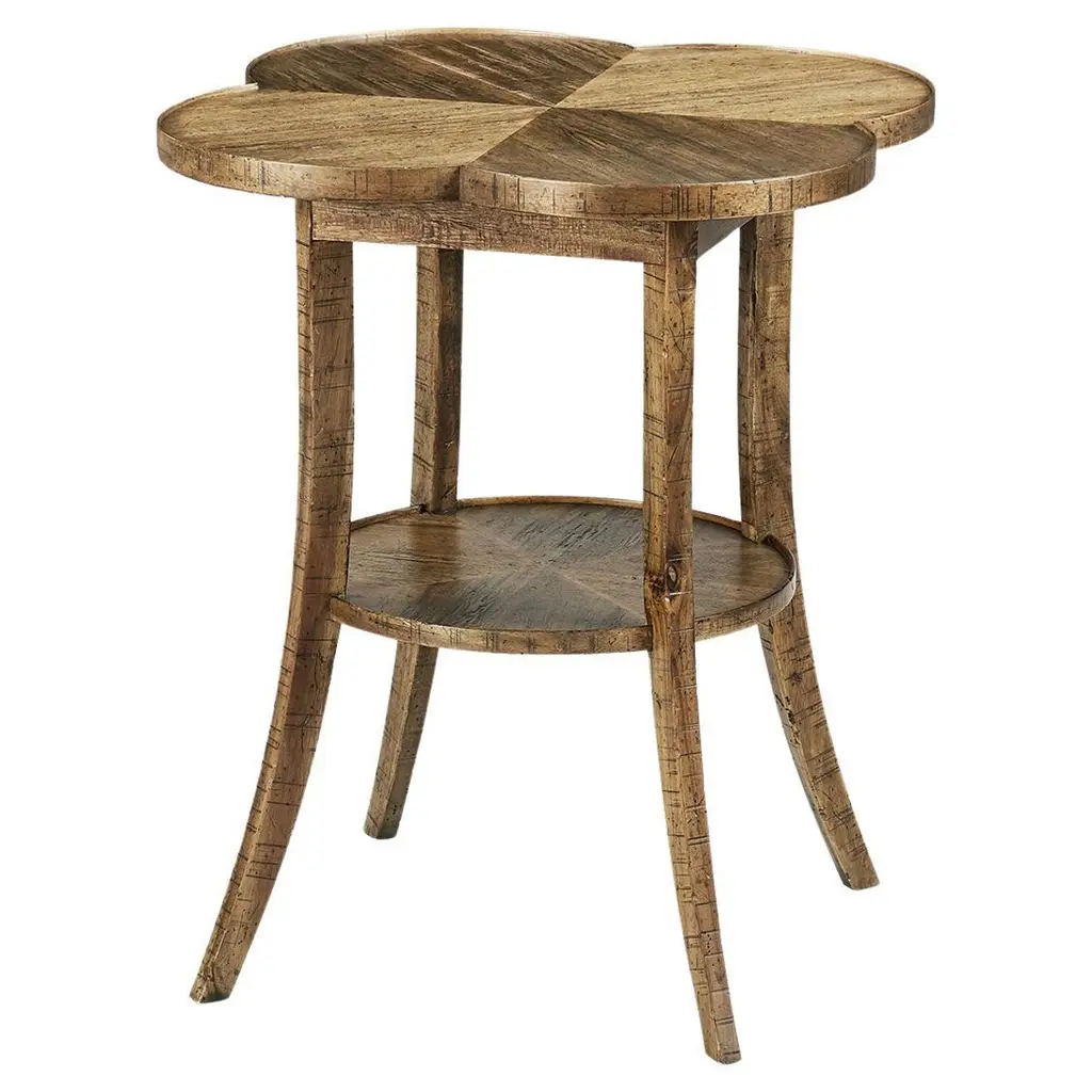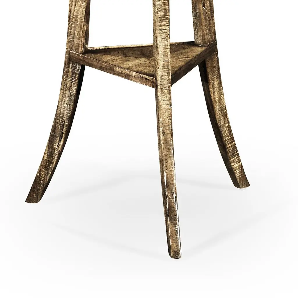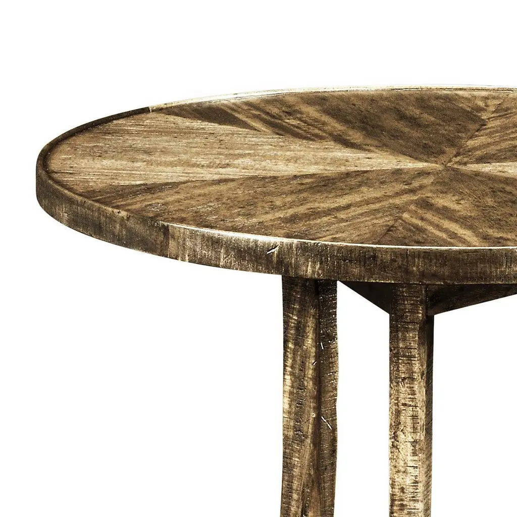 Designed with a timeless aesthetic, this table features a heavily distressed acacia wood construction that brings an air of rustic old-world charm to any room. The round tabletop sits gracefully on saber-style legs, creating a beautifully balanced silhouette.Whether placed beside a sofa or as an accent piece in a cozy nook, this table enhances the ambiance of your home with its old-world craftsmanship and rich, medium brown driftwood finish. Perfect for displaying decorative accents, a warm lamp, or a cherished book, this end table is both functional and stylish, making it a must-have addition to any refined interior.Dimensions: 25" W x 25" D x 28" H