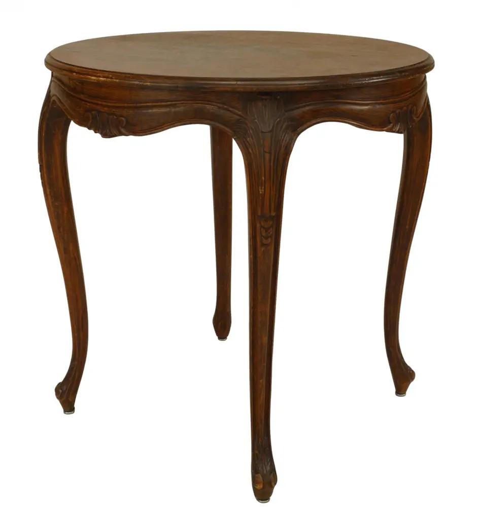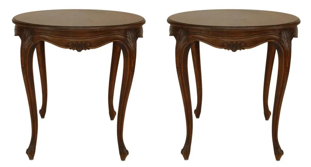 2 French Louis XV-style (20th Century) provincial round walnut 4 legged end tables (PRICED EACH)