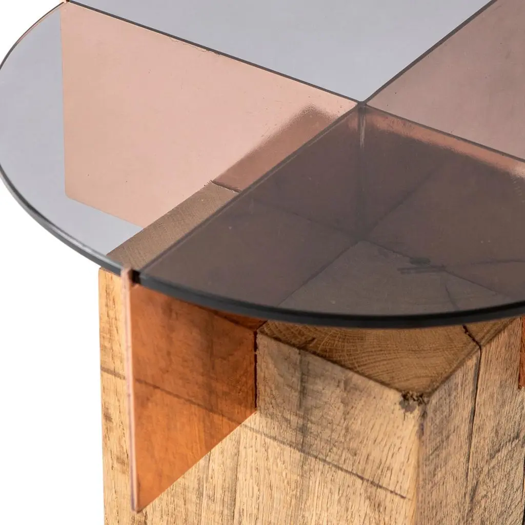 French Oak, Copper And Glass Jewel Totem Side Table By Egg Designs