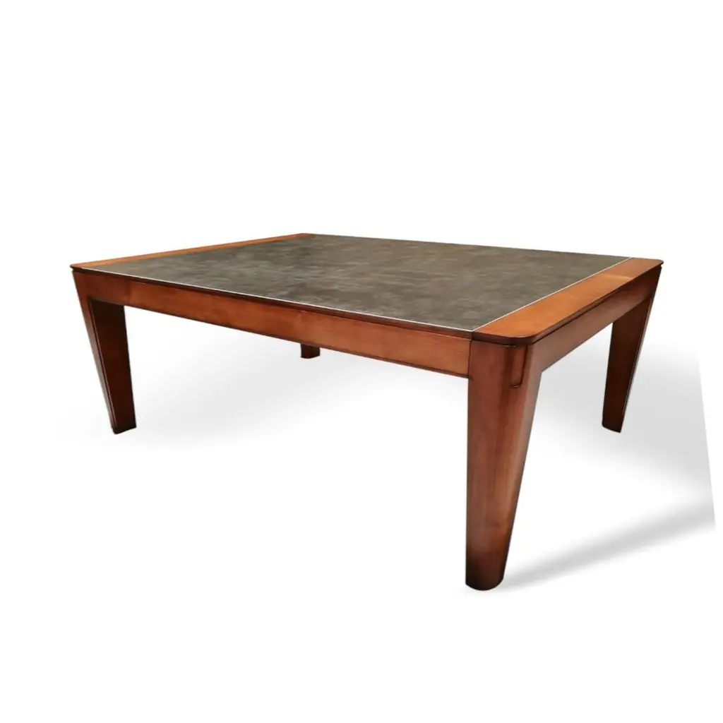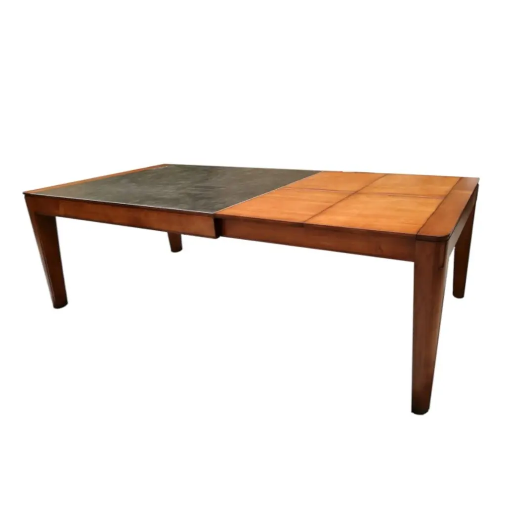 French Rectangular Handcrafted Extendable Table In Solid Oak Wood & Ceramic Top