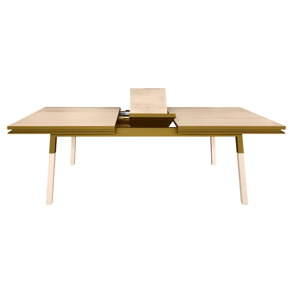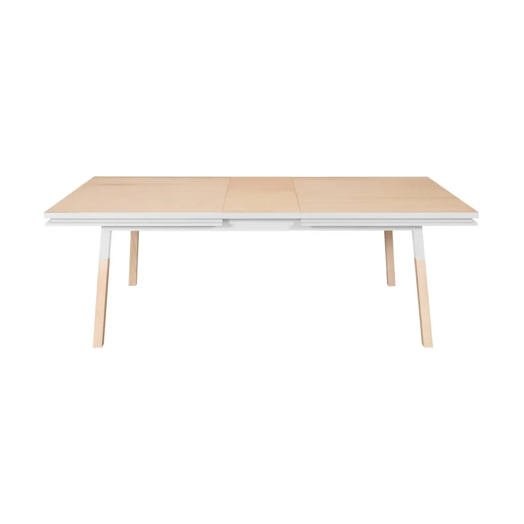 This extensible dining table is designed by Eric Gizard in Paris. It is made of 100% solid ash wood from sustainably managed and PEFC certified French forests.Length: closed 200 cm / 78.7"’ , with 1 unfolded extension 240 cm / 94.5", with 2 unfolded extensions 280 cm / 110.2" Each extension is also in solid ash wood and 40 cm / 15.7'' widePresented width is 100 cm / 39.4"Height 77 cm / 30.3’’Unfold and dispose the extensions / leaves from the middle of the top by releasing first the brakes under the skirt and pulling one part of the tray aside. The other part is moving accordingly and synchroneously. Weight 40 to 90 kg depending on the size and number of extensionsThis piece of furniture is part of the ÉGÉE collection designed by the famous French Parisian designer Eric Gizard, that combines the sleek and refined codes of Scandinavian design with natural materials and colorful lacquers in an unique « short pants » finish.Mon Petit Meuble Français provides exclusively 100% Made in France Funiture.The manufacture and finishes are of very high quality, carried out by French craft workshops.