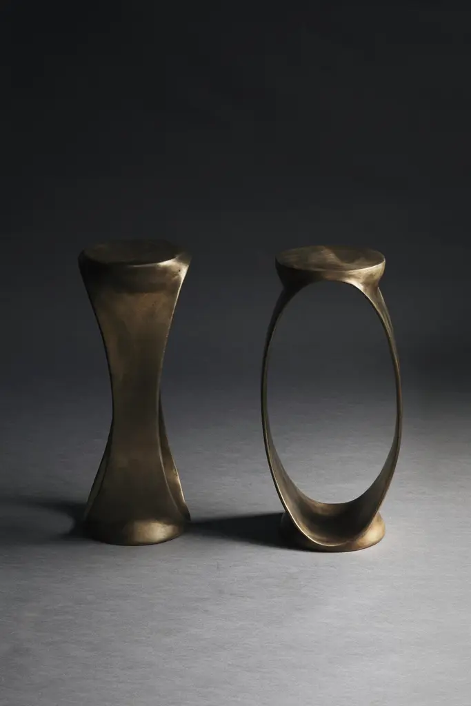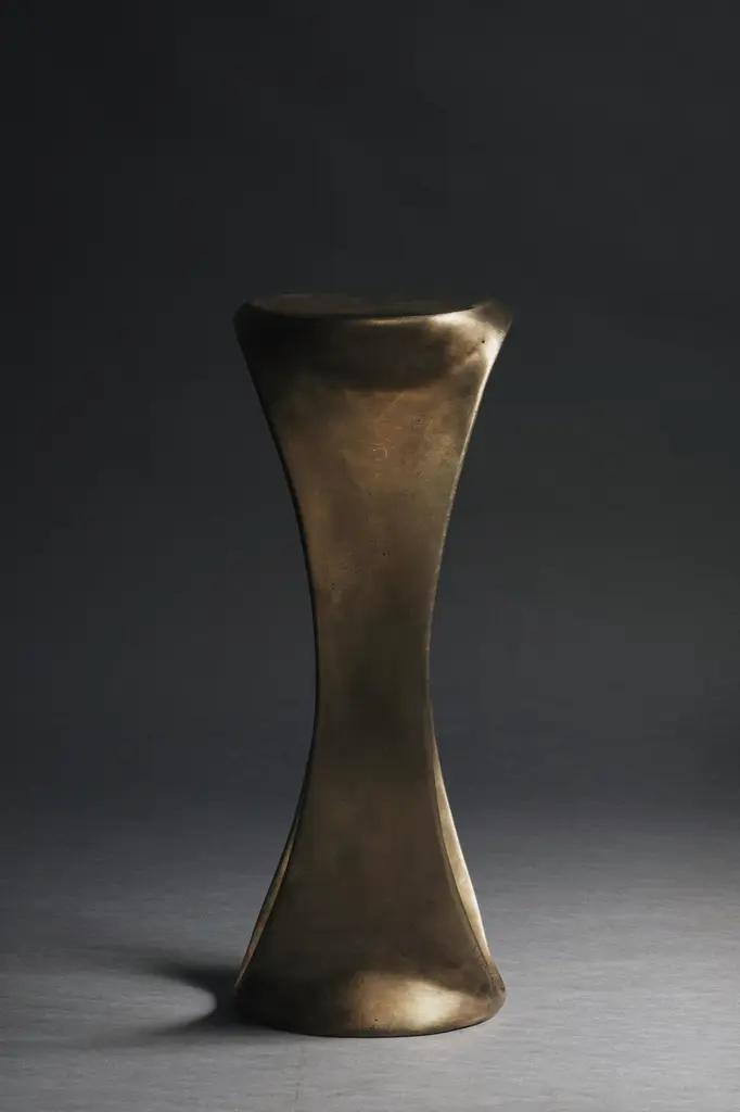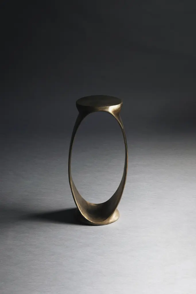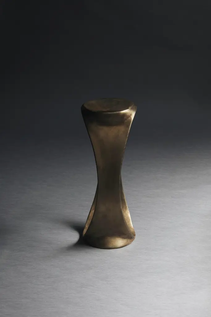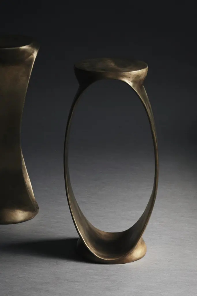 Frequency Side Table by Sebastián AngelesMaterial: Bronze, Silver PatinaDimensions: W18 x D21 x H47 cmWeight: 7 kgLove is a powerful emotion that can bring people together and create a sense of harmony and balance, the table’s design aims to capture the essence of that feeling. With a smooth, polished finish that reflects light and highlights the richness of the metal. The frequency of the sound of love, believed to resonate at 528 Hz is also associated with healing, transformation and restoration of balance.Sebastián AngelesMexican Industrial Designer graduated from Universidad Anáhuac Mexico, currently serves as Creative Director of Dórica (Mexican Furniture Firm), but has collaborated with important brands and companies. His professional development began prematurely, so his career seems to be advanced for his age (26). Sebastián is currently the youngest designer to collaborate with Breuer (Trasiego 2020) and the Mexican brand Pirwi, (Desierto Collection, Nominated for Iconos del Diseño 2019 by Architectural Digest) and is signaled as a design promise by media such as Excélsior, Archdaily and Reforma.His work as a designer has led the brand Dórica to national and international exhibitions such as Designweek Mexico, AMD and Wanted Design in New York. Sebastián is part of Mass Collective (a creative union dedicated to experimentation), which has exhibited his work at the Tamayo Museum and at Ventura Futura in Milan. In his stage as a student Sebastian, was part of different calls, reaching the podiums of the most important competitions in the country. Dimueble 2016 (finalist) Dimueble 2017 (first place) A! Furniture Design (Silver) Ahec Design Awards Chair (2nd place). Sebastian’s design philosophy is very clear, and his products are characterized by having a strong conceptual background.