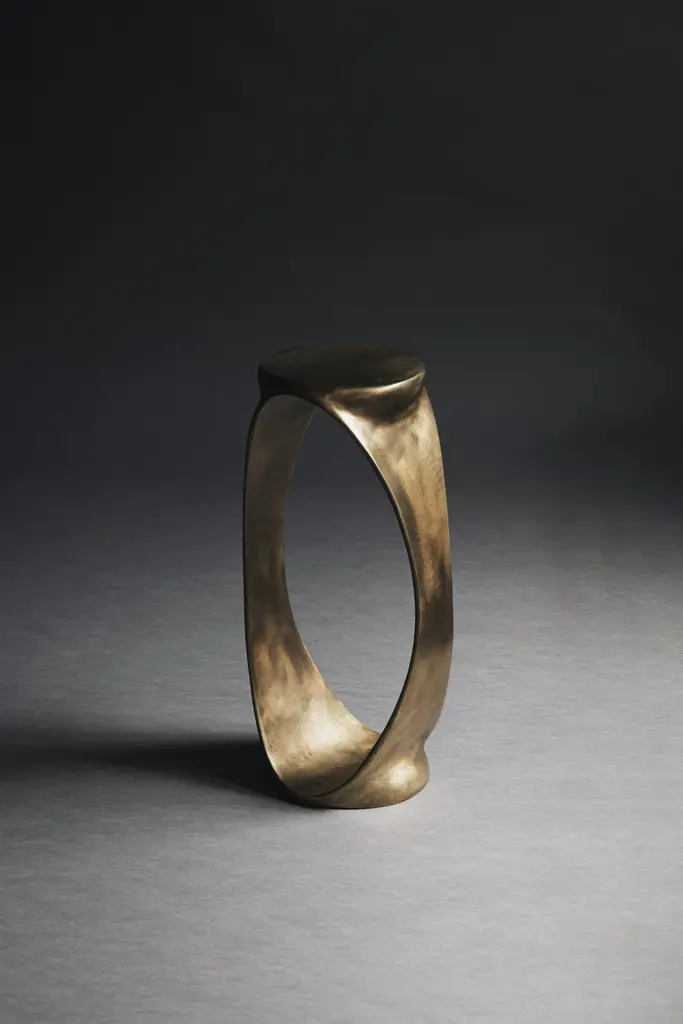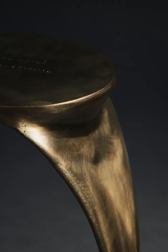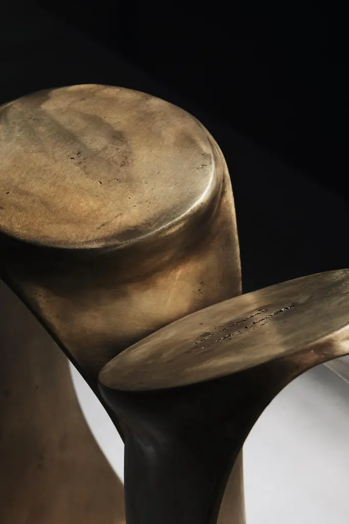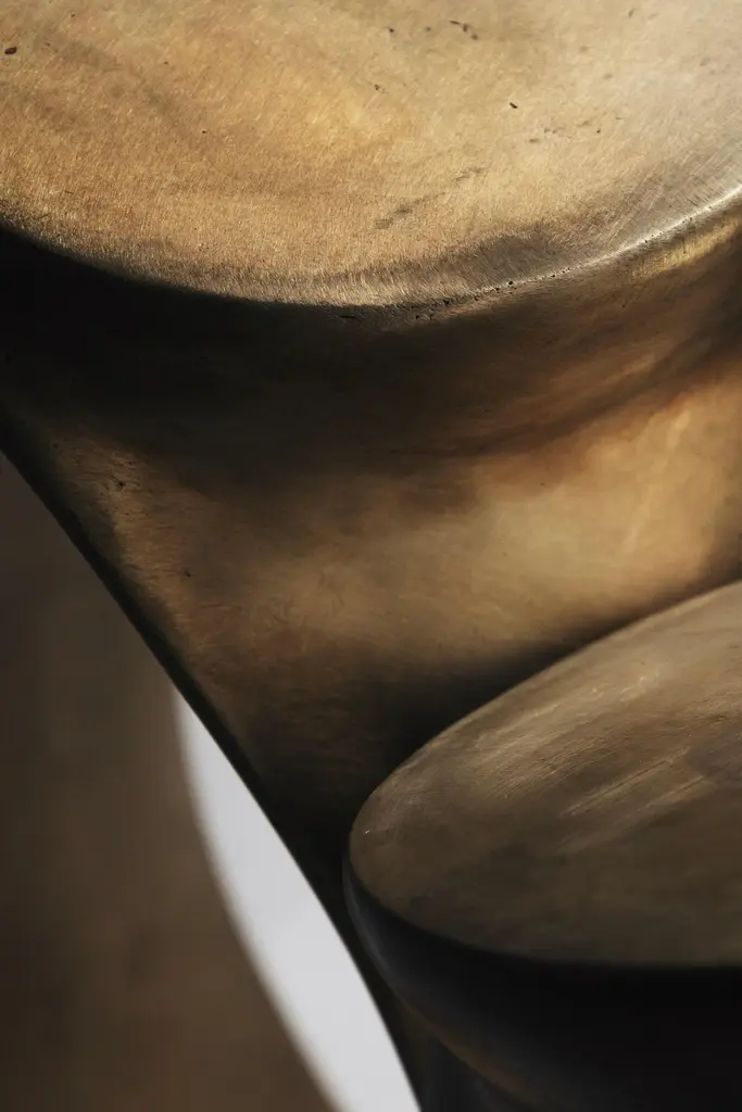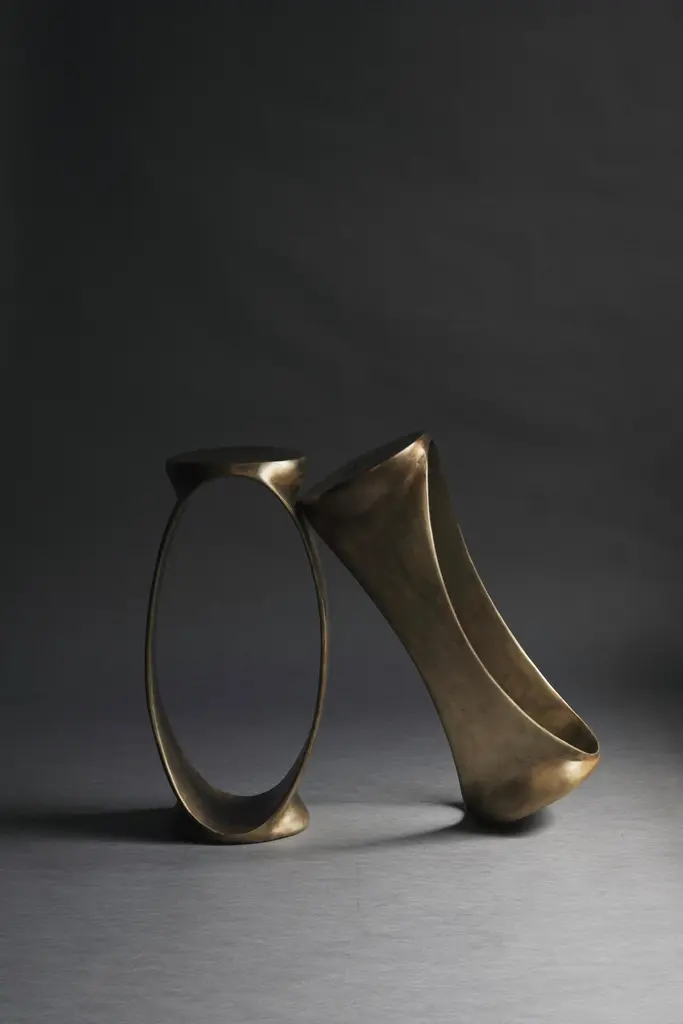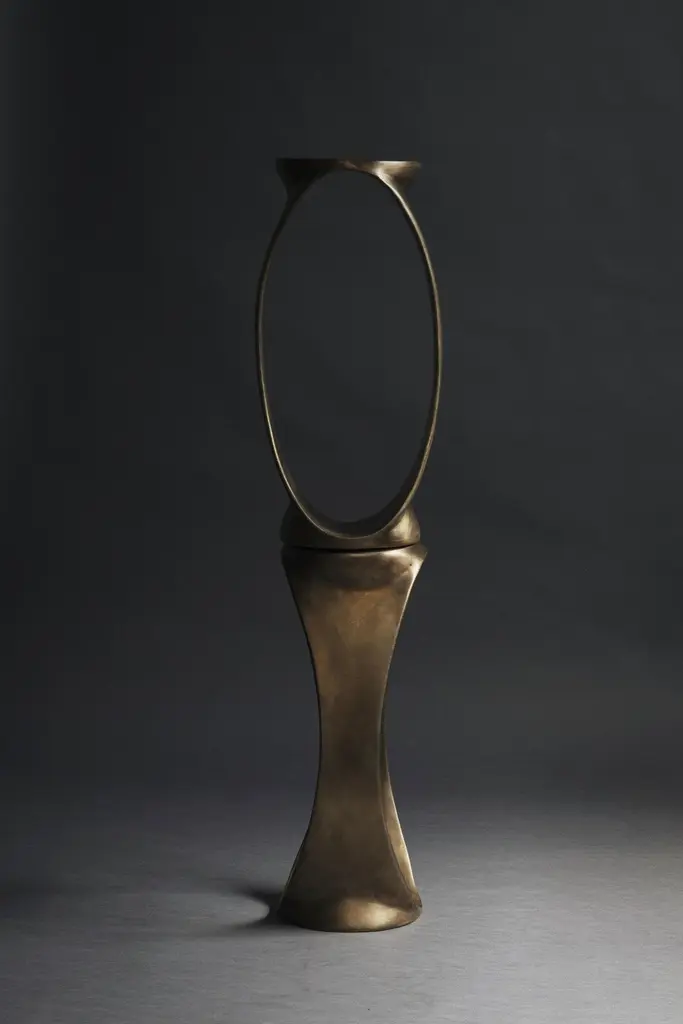Frequency Side Table by Sebastián AngelesMaterial: Bronze, Silver PatinaDimensions: W18 x D21 x H47 cmWeight: 7 kgLove is a powerful emotion that can bring people together and create a sense of harmony and balance, the table’s design aims to capture the essence of that feeling. With a smooth, polished finish that reflects light and highlights the richness of the metal. The frequency of the sound of love, believed to resonate at 528 Hz is also associated with healing, transformation and restoration of balance.Sebastián AngelesMexican Industrial Designer graduated from Universidad Anáhuac Mexico, currently serves as Creative Director of Dórica (Mexican Furniture Firm), but has collaborated with important brands and companies. His professional development began prematurely, so his career seems to be advanced for his age (26). Sebastián is currently the youngest designer to collaborate with Breuer (Trasiego 2020) and the Mexican brand Pirwi, (Desierto Collection, Nominated for Iconos del Diseño 2019 by Architectural Digest) and is signaled as a design promise by media such as Excélsior, Archdaily and Reforma.His work as a designer has led the brand Dórica to national and international exhibitions such as Designweek Mexico, AMD and Wanted Design in New York. Sebastián is part of Mass Collective (a creative union dedicated to experimentation), which has exhibited his work at the Tamayo Museum and at Ventura Futura in Milan. In his stage as a student Sebastian, was part of different calls, reaching the podiums of the most important competitions in the country. Dimueble 2016 (finalist) Dimueble 2017 (first place) A! Furniture Design (Silver) Ahec Design Awards Chair (2nd place). Sebastian’s design philosophy is very clear, and his products are characterized by having a strong conceptual background.