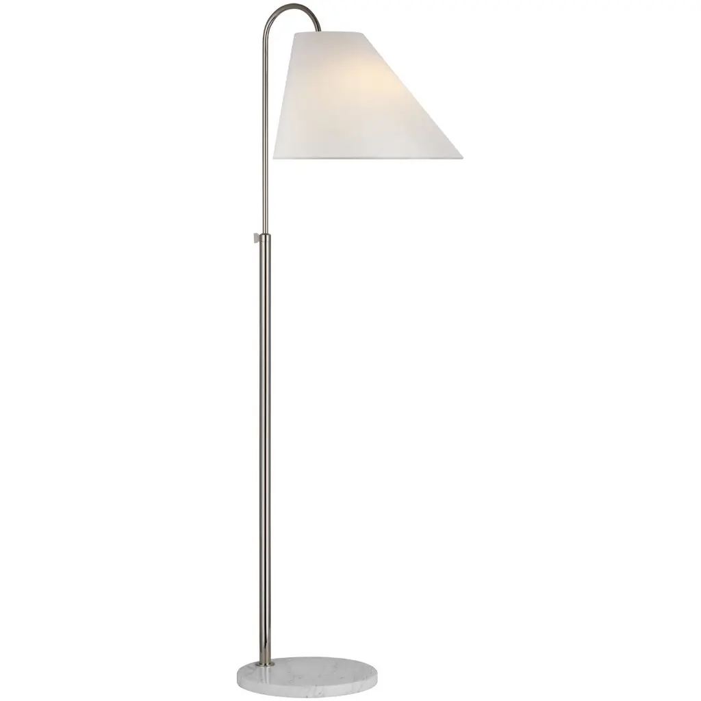 Ian Thornton has been exploring how to bring task lights high style, and he has certainly succeeded with the Frey Floor Lamp that is made of steel in a satin black finish with brushed brown accents. The way the off-white shantung shade is fitted to the curving arm is a refined aspect of the design, as it lends the profile a subtle Asian flair. The stacked base has an engineered precision but it also creates a wonderful sense of balance as it extends to the point where the bands holding the shade taper down.