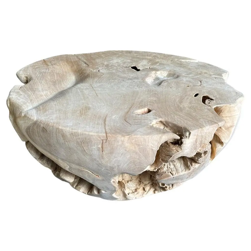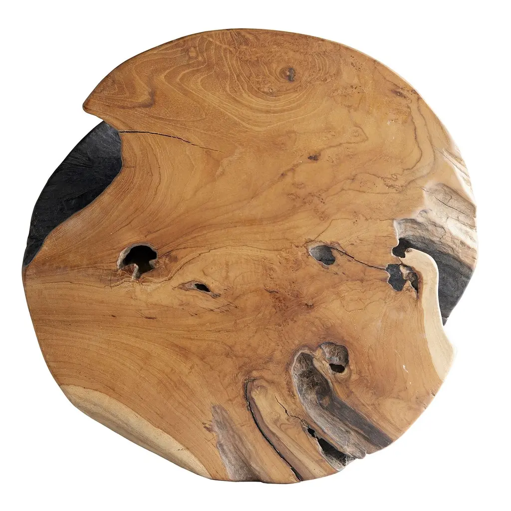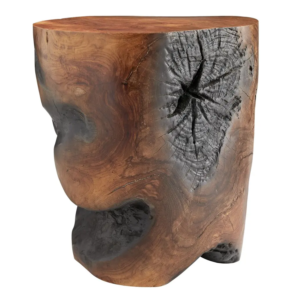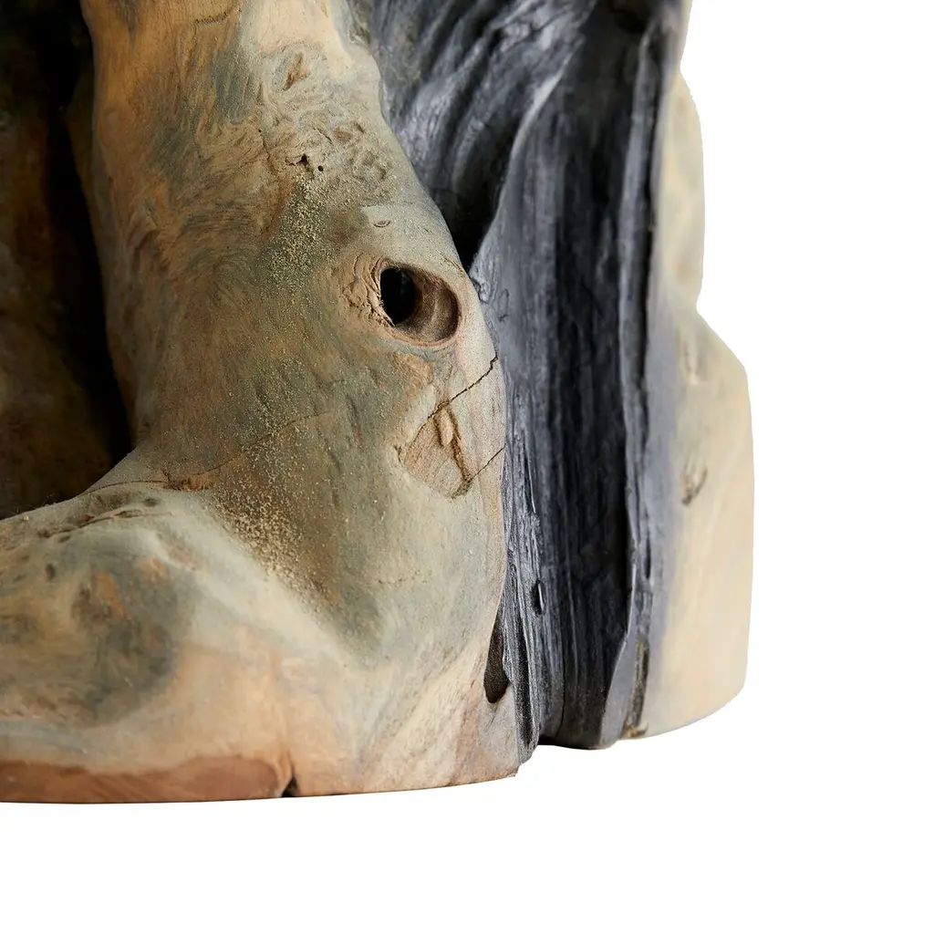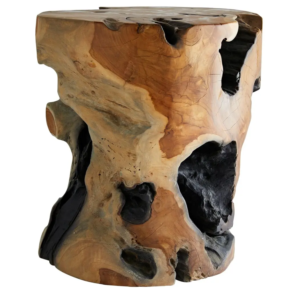 Teak root has been unearthed to create this awe-inspiring accent table. The organic form has been burned along its façade to highlight the naturally occurring depressions that appear throughout the piece. Each is one-of-a-kind allowing it to present a found object feel. A natural choice for any style setting. Size and shape will vary.