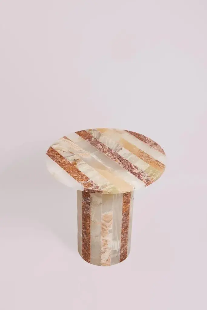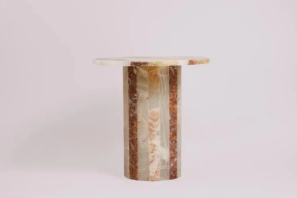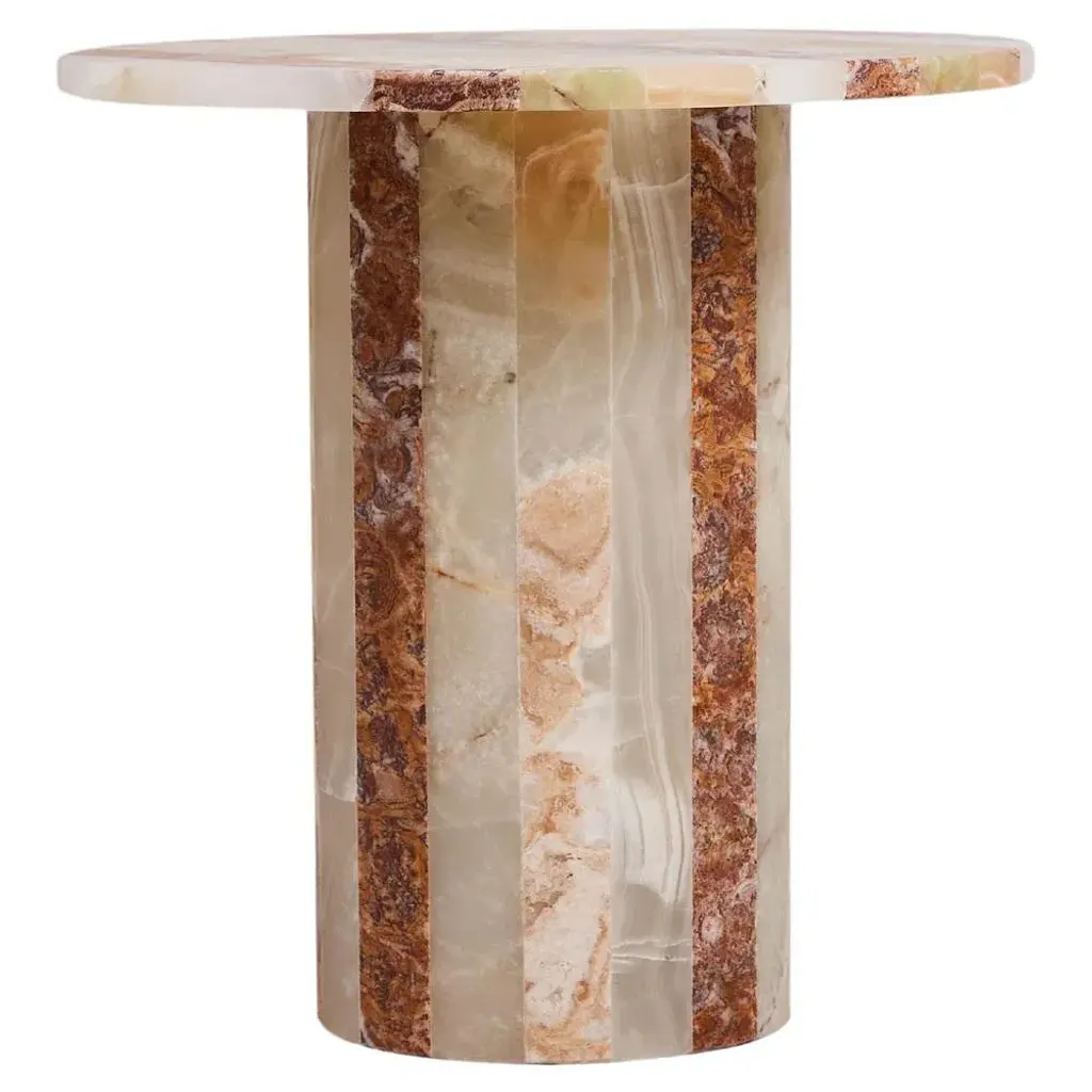 Frida Side Table by Studio Gaia Paris Dimensions: ⌀ 50 x H 50 cm Materials: White, Red, Green and Amber Onyx. The Frida Striped Onyx Side Table is a refined and elegant piece of furniture that will bring a touch of luxury to any interior. Made from high-quality natural onyx, this side table is both functional and aesthetically sharp, making it an exceptional decorative item.