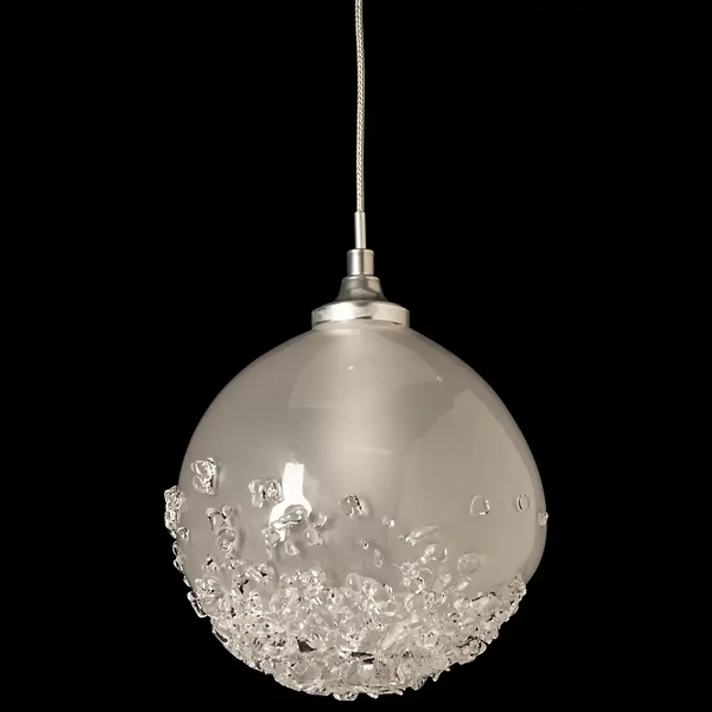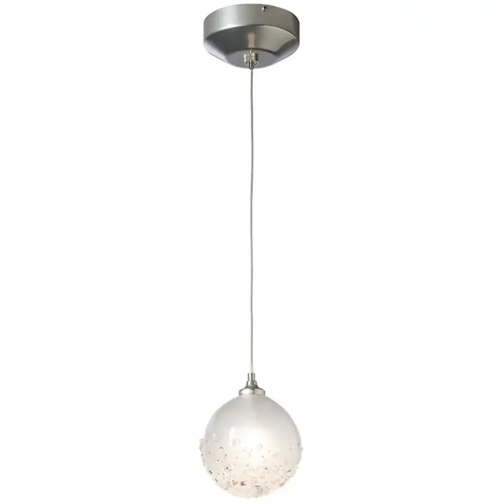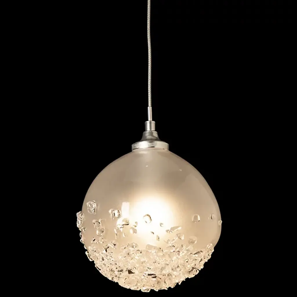Sugary sparkle to enhance modern interiors. The Fritz Globe Mini Pendant by Hubbardton Forge has a smooth, spherical glass shade dipped in textural glass frit. The fused frit gives this mini pendant a sweet look that glistens like a snowball over a kitchen island or a bedside table. When illuminated, the frit adds subtle shimmer to the warm light diffused through the shade. Every Fritz is handmade to order by artisans in Vermont.