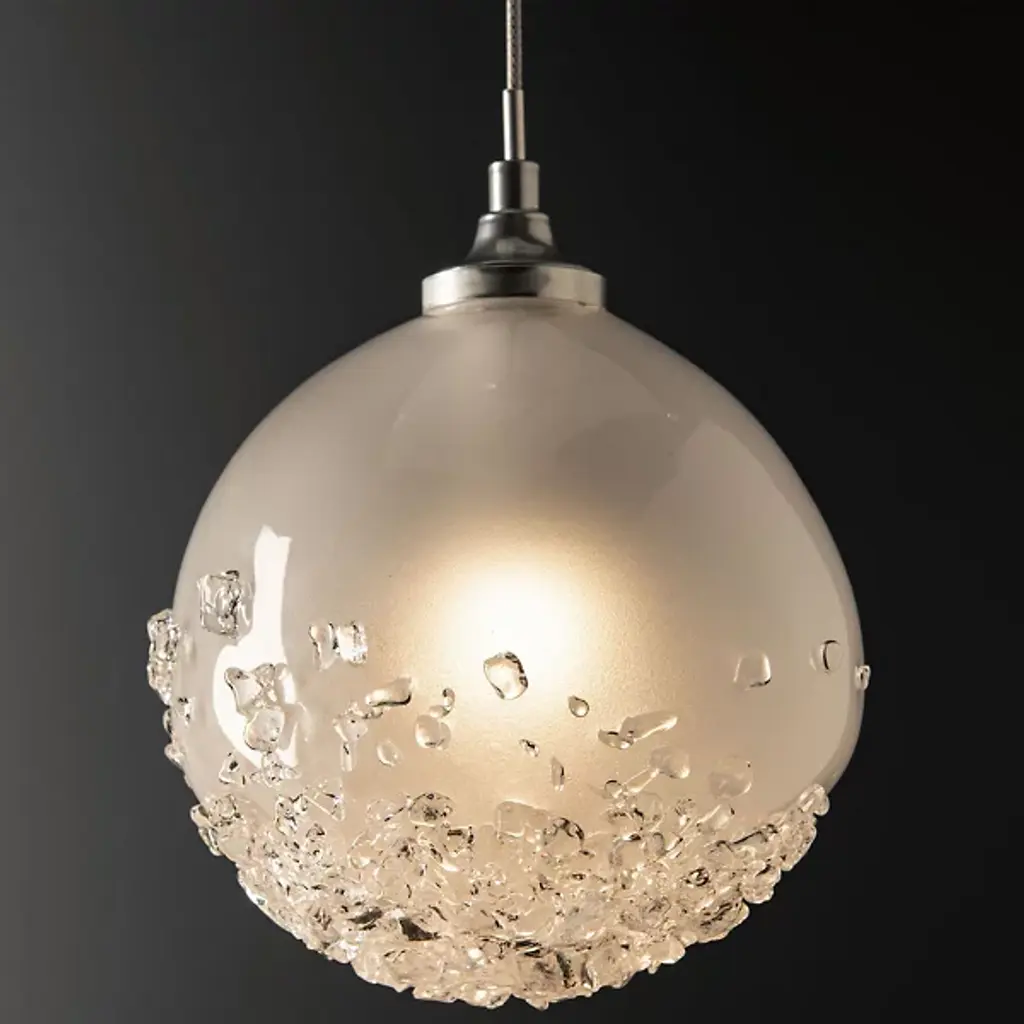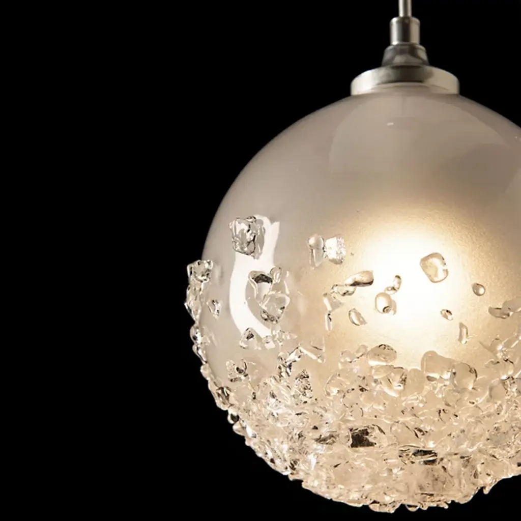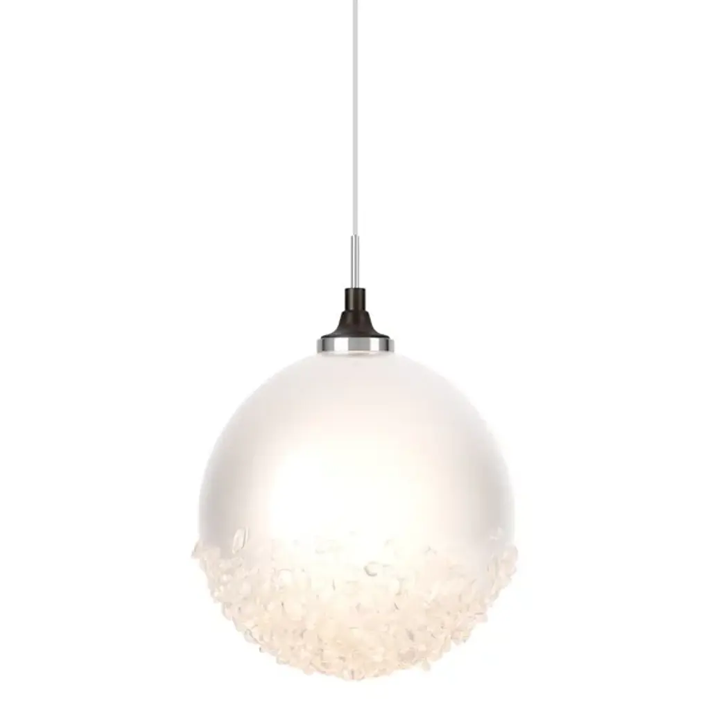 Sugary sparkle to enhance modern interiors. The Fritz Globe Mini Pendant by Hubbardton Forge has a smooth, spherical glass shade dipped in textural glass frit. The fused frit gives this mini pendant a sweet look that glistens like a snowball over a kitchen island or a bedside table. When illuminated, the frit adds subtle shimmer to the warm light diffused through the shade. Every Fritz is handmade to order by artisans in Vermont.