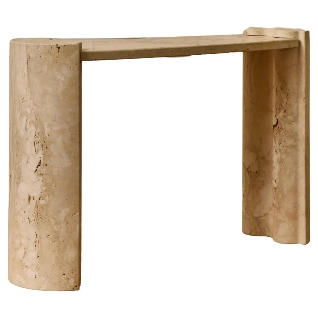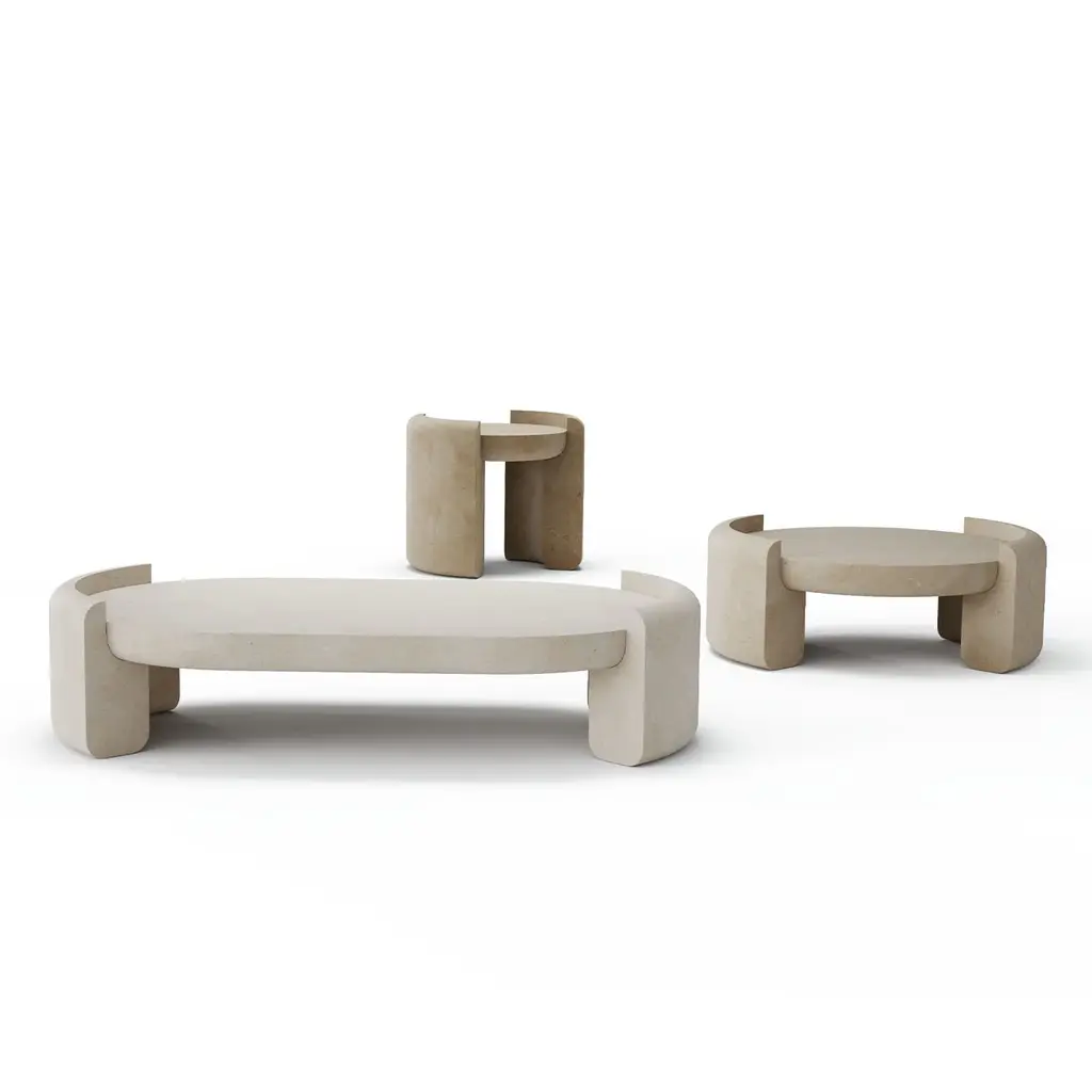 Fuente is a side table designed by Studio Aretai and it is part of the Fuente collection of coffee tables, consoles. Each piece is crafted from monolithic Pimar Lecce stone, known for its natural beauty and durability, and features an elegant, minimalist design that draws inspiration from the archetype of the trilithon. This fusion of monumental structure and contemporary design perfectly reflects the core aesthetic and craftsmanship of Pimar.