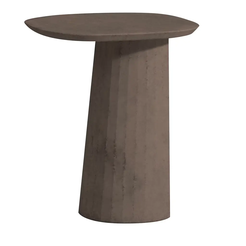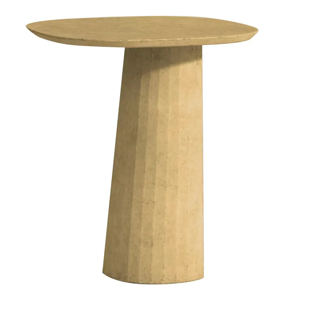 This red brick-colored side table belongs to a superb series that draws inspiration from classical architecture. Crafted of ultra-high-performance concrete sandblasted and hand-treated with water repellent products, the hard-edge quality of this material contrasts the delicate and lightweight lines that define this piece. The sturdy, column-shaped leg supporting the piece slightly oblique angle is marked by a grooved texture recalling ancient Roman and greek architecture. Eight other shades are available upon request to the Concierge.