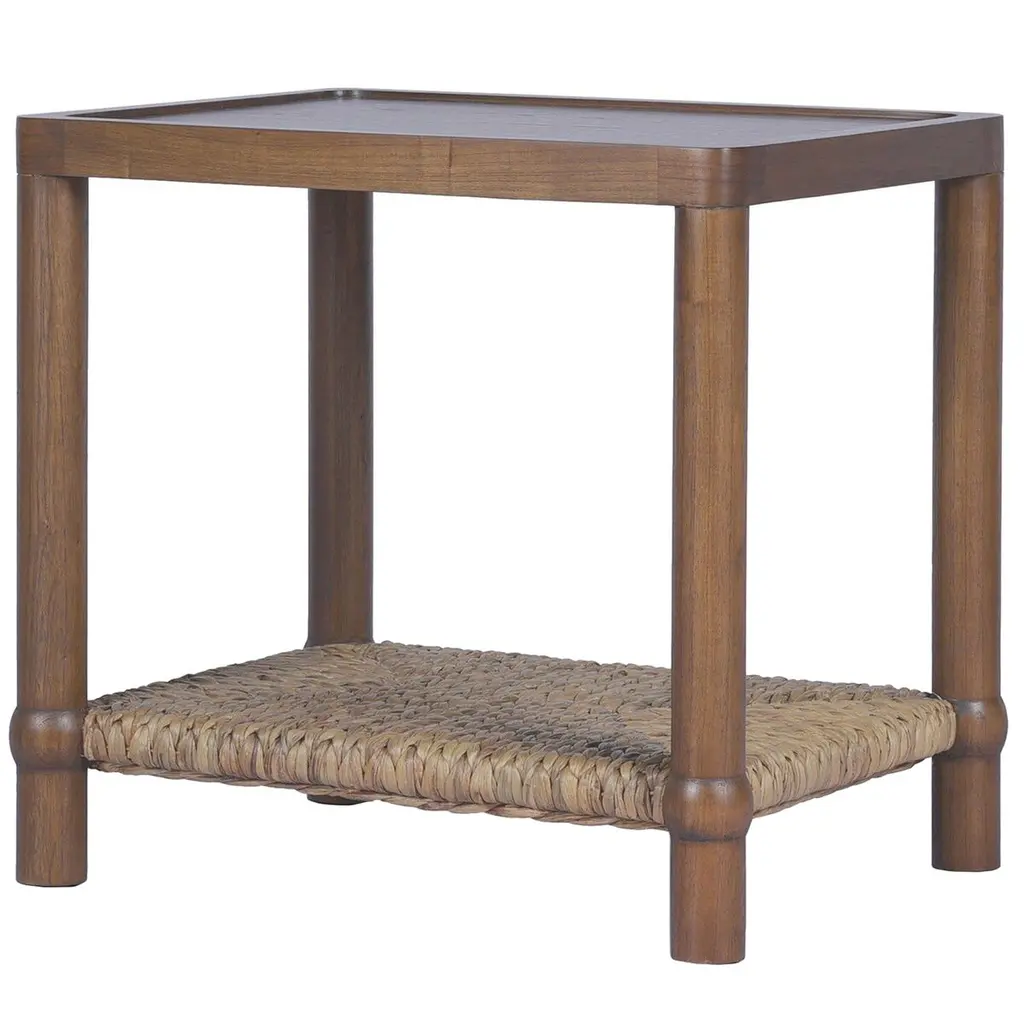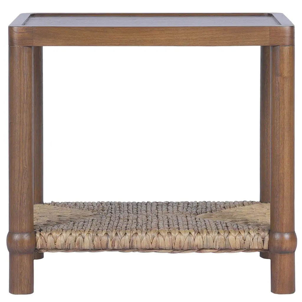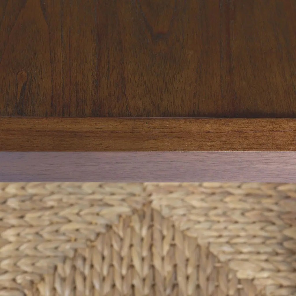Meeting heritage inspiration with new practicality, this table features a woven hyacinth shelf that appears to veil the wooden frame. Ball details at each leg connection add to its natural appeal.