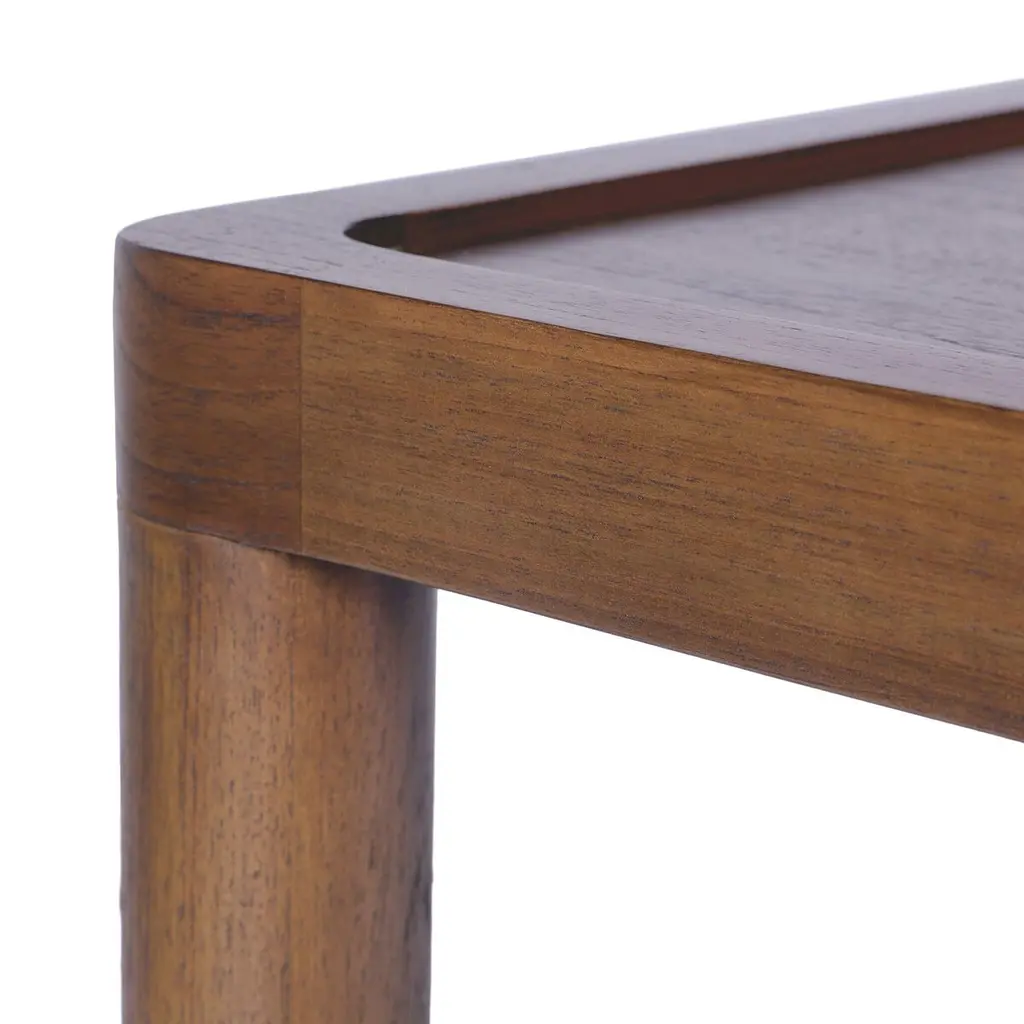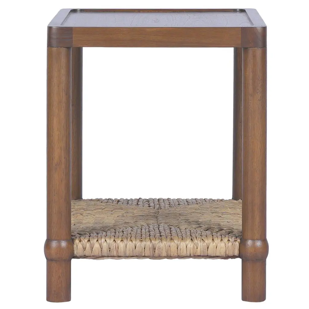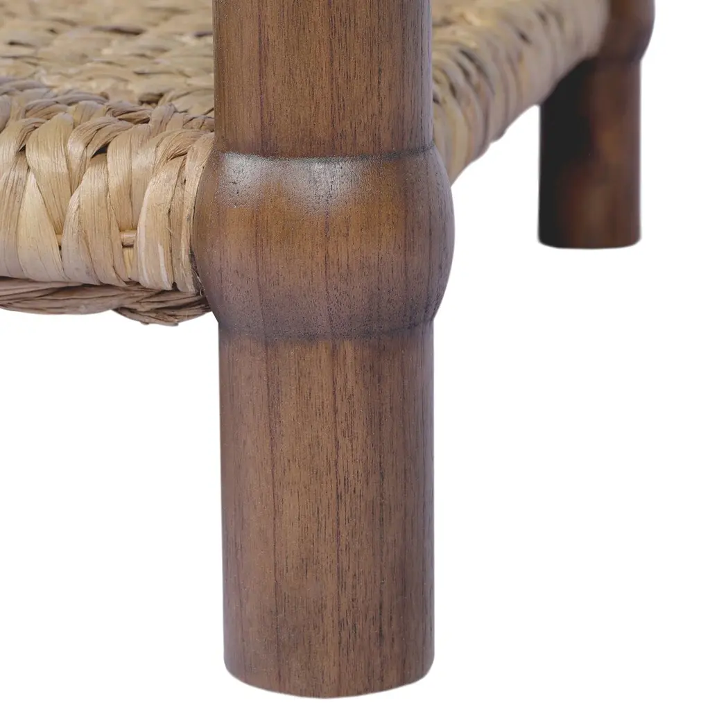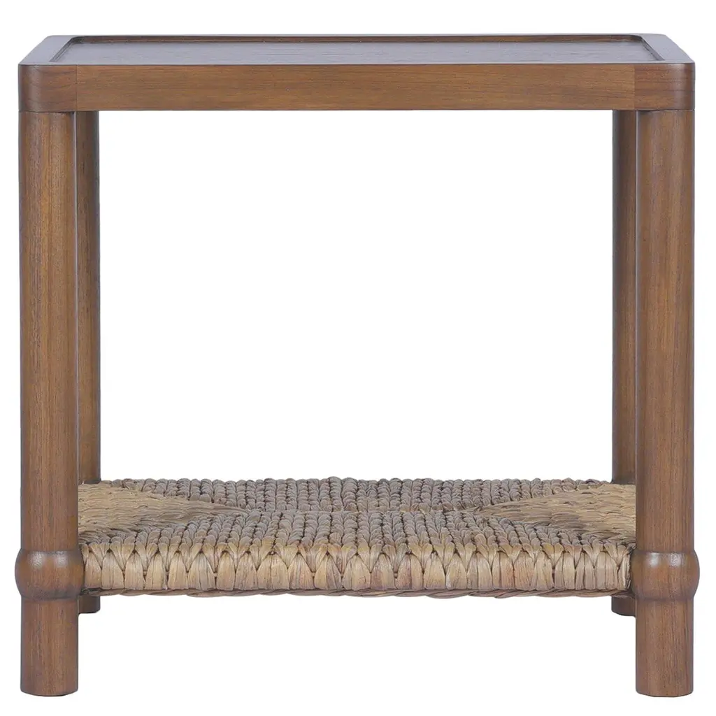 Meeting heritage inspiration with new practicality, this table features a woven hyacinth shelf that appears to veil the wooden frame. Ball details at each leg connection add to its natural appeal.