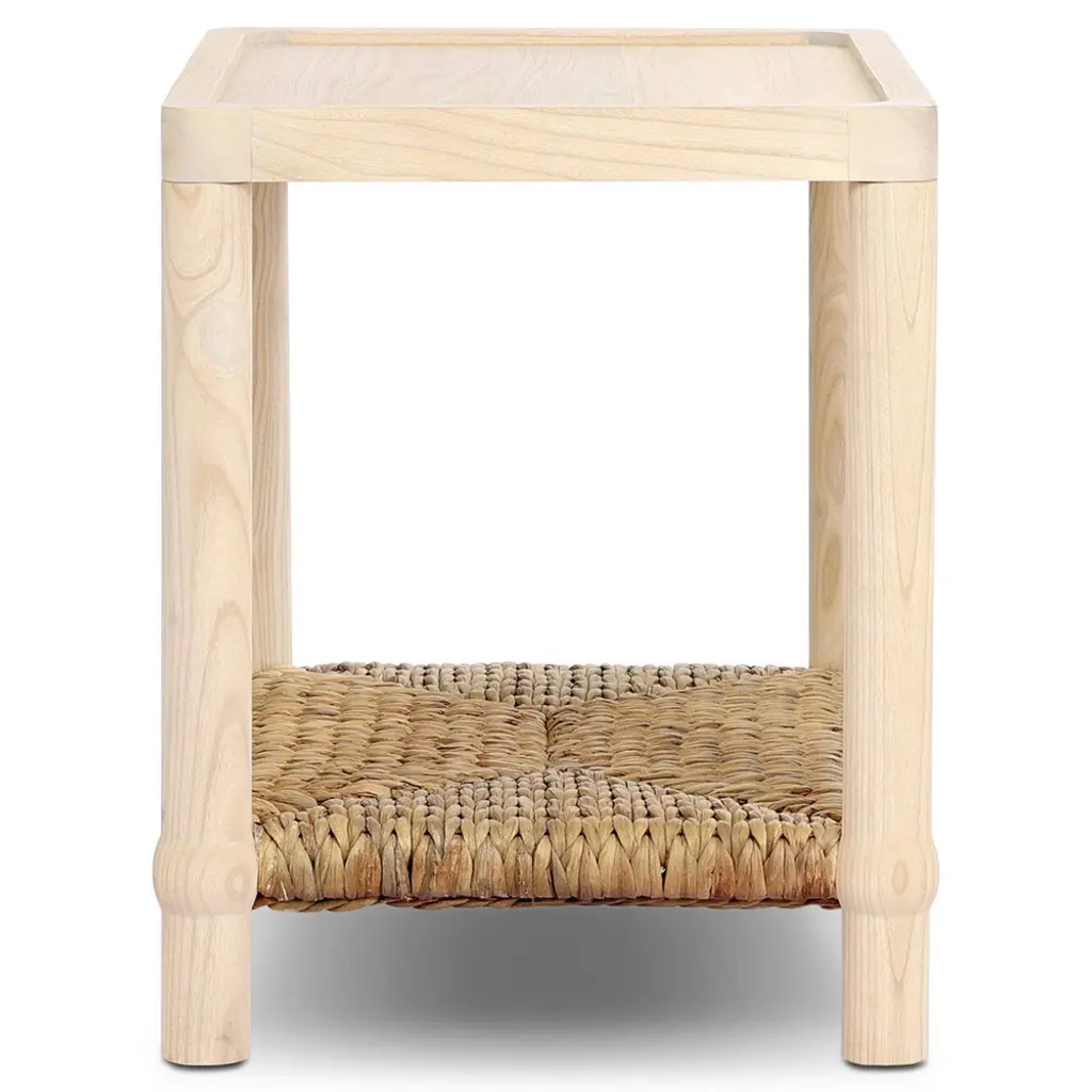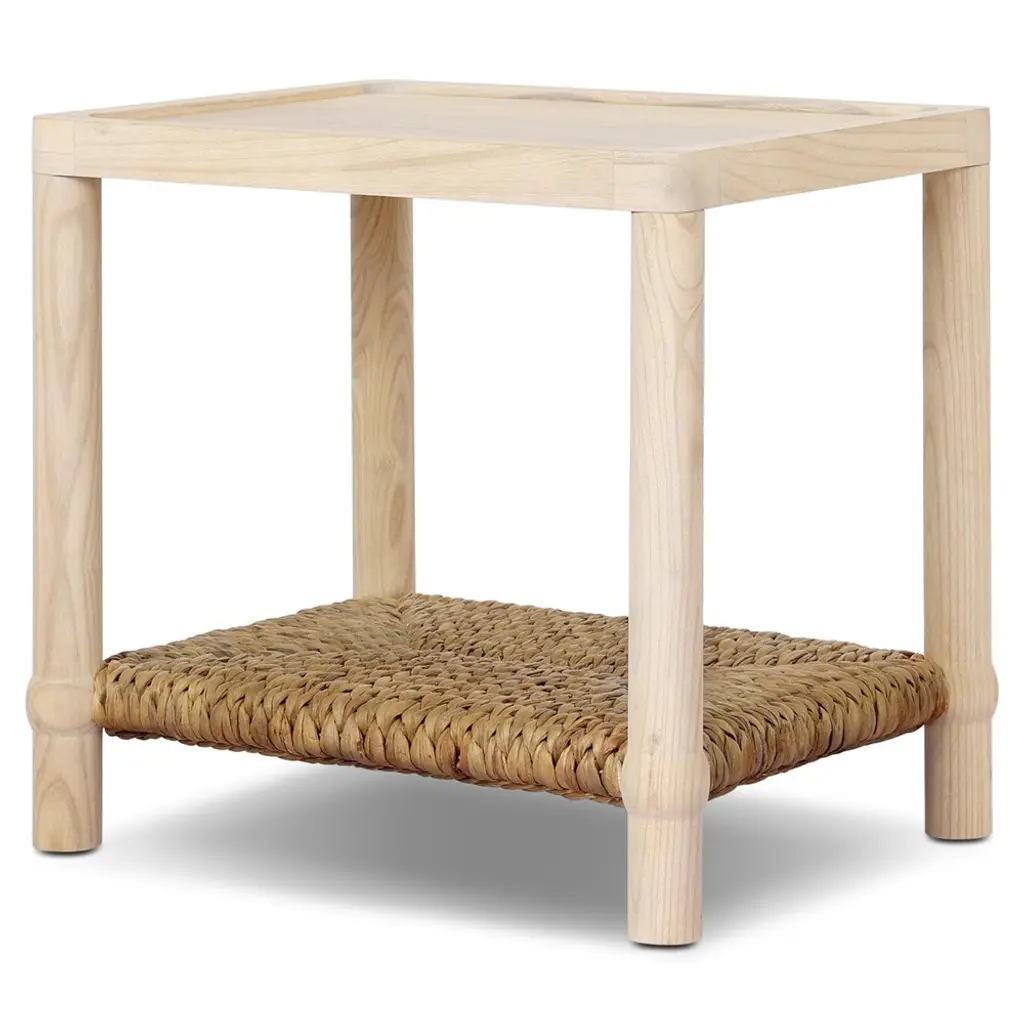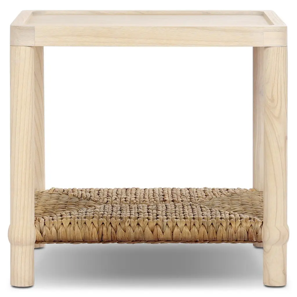 A design collaboration by Amber Lewis and Four Hands. Meeting heritage inspiration with fresh functionality, this compact end table features a woven hyacinth shelf that appears to veil a wooden frame. Ball details at each leg connection and a light finish add to its natural appeal.