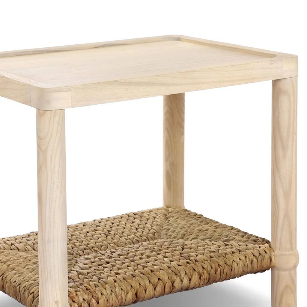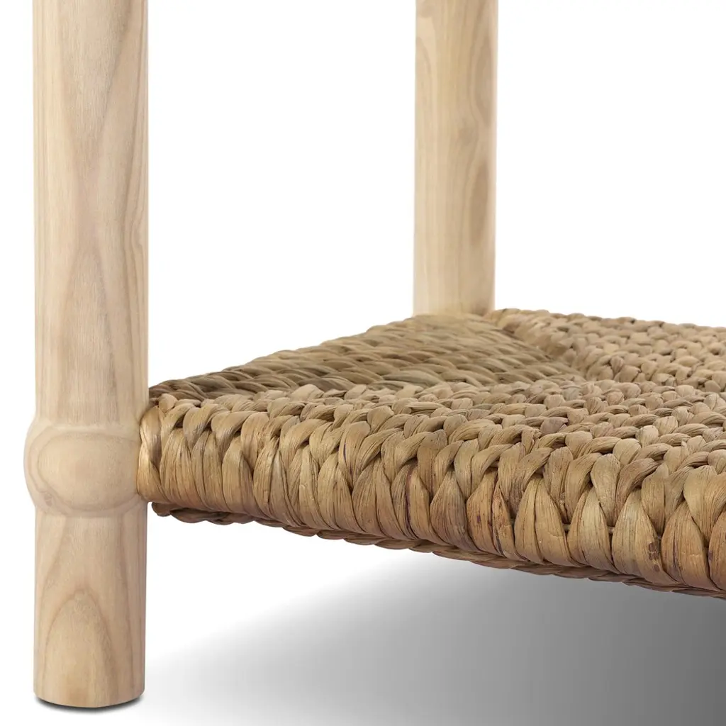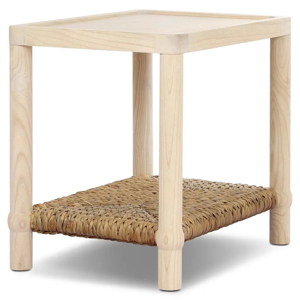 A design collaboration by Amber Lewis and Four Hands. Meeting heritage inspiration with fresh functionality, this compact end table features a woven hyacinth shelf that appears to veil a wooden frame. Ball details at each leg connection and a light finish add to its natural appeal.