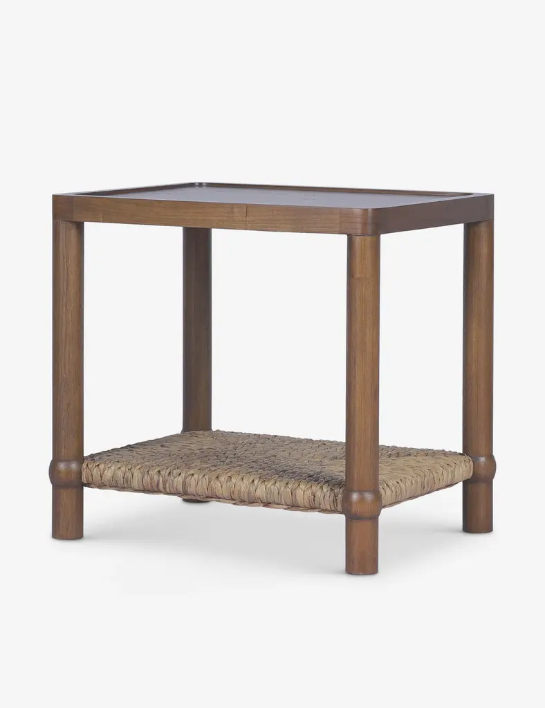 Four Hands brings their exceptional craftsmanship to a timeless collection rooted in Amber Lewis' perennial California style. A woven lower shelf adds a classic twist to a modern side table. The rectangular design shows off rounded corners and a warm brown finish, creating an end table that's refined and inviting in any setting.