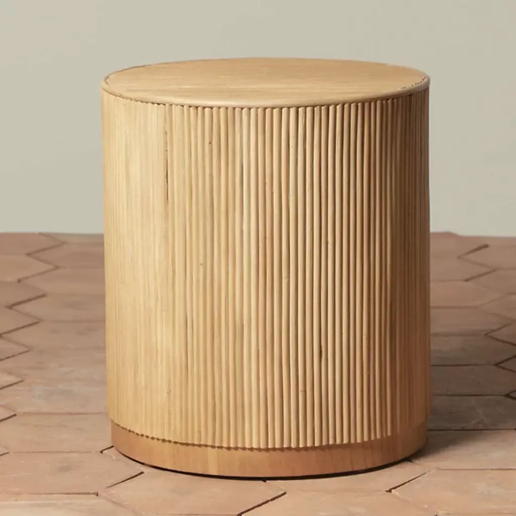 The Gabriella Side Table from Woven recreates the classic tree stump through refined craftsmanship. Made from sustainable rattan and white cedar, this versatile piece transitions smoothly between sofas and beds. Its cylindrical shape offers practical surface area while maintaining a modest footprint. Indonesian artisans carefully shape each component, ensuring quality in every detail. This interpretation of organic form through modern design creates a piece that's both useful and meaningful.