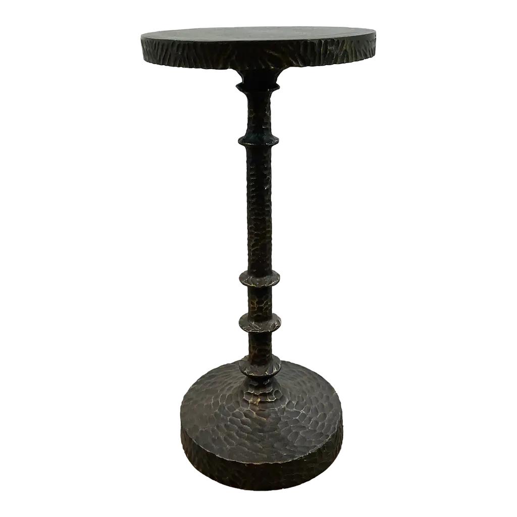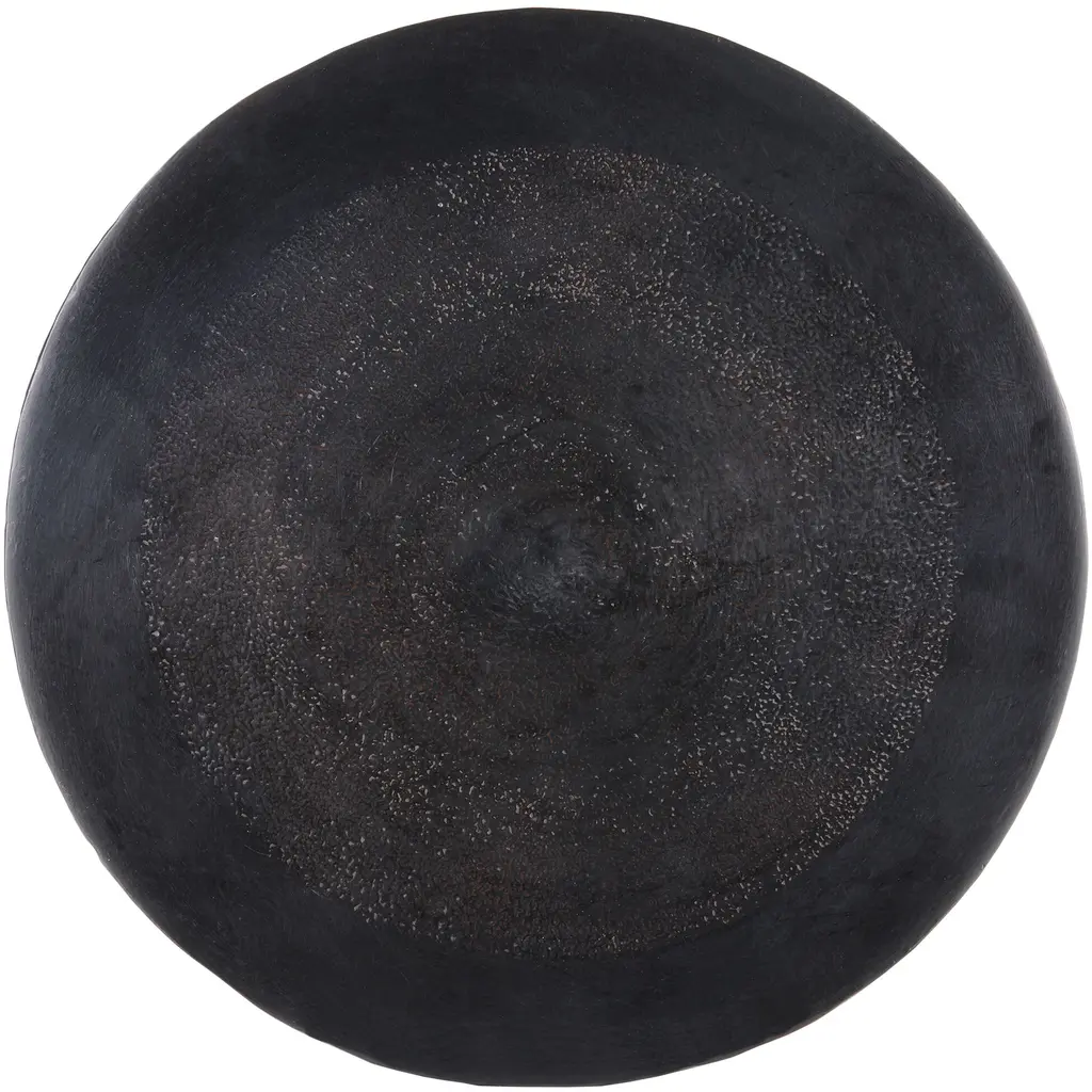 The Gallo Bronze Accent Table is a clean and simple design with a textured surface that enhances its artful personality. The patterning reads like ripples along the entire piece except the top. The color of the nearly black occasional table is accented by the bronze finish, which highlights the character in the material with subtle hints of reddish brown. The implied discs that flow along the thin stem from the top to the base further the artisanal feel of its profile.