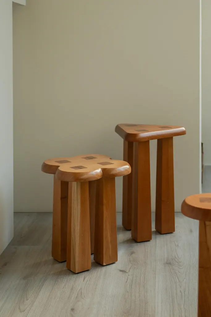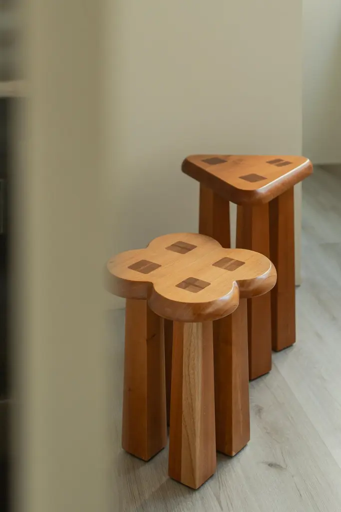 These side wooden stools capture the elegance and charm of antique card tables, where cards and camaraderie intertwined in endless afternoons. Each bench is meticulously designed with shapes reminiscent of classic symbols such as clovers, triangles, and flowers, creating a visual homage to a bygone era.Crafted from solid wood, these benches stand out not only for their aesthetic appeal but also for their durability and artisanal quality. The hand-carved details on the backs and legs reflect exquisite craftsmanship, making each piece a unique work of art.