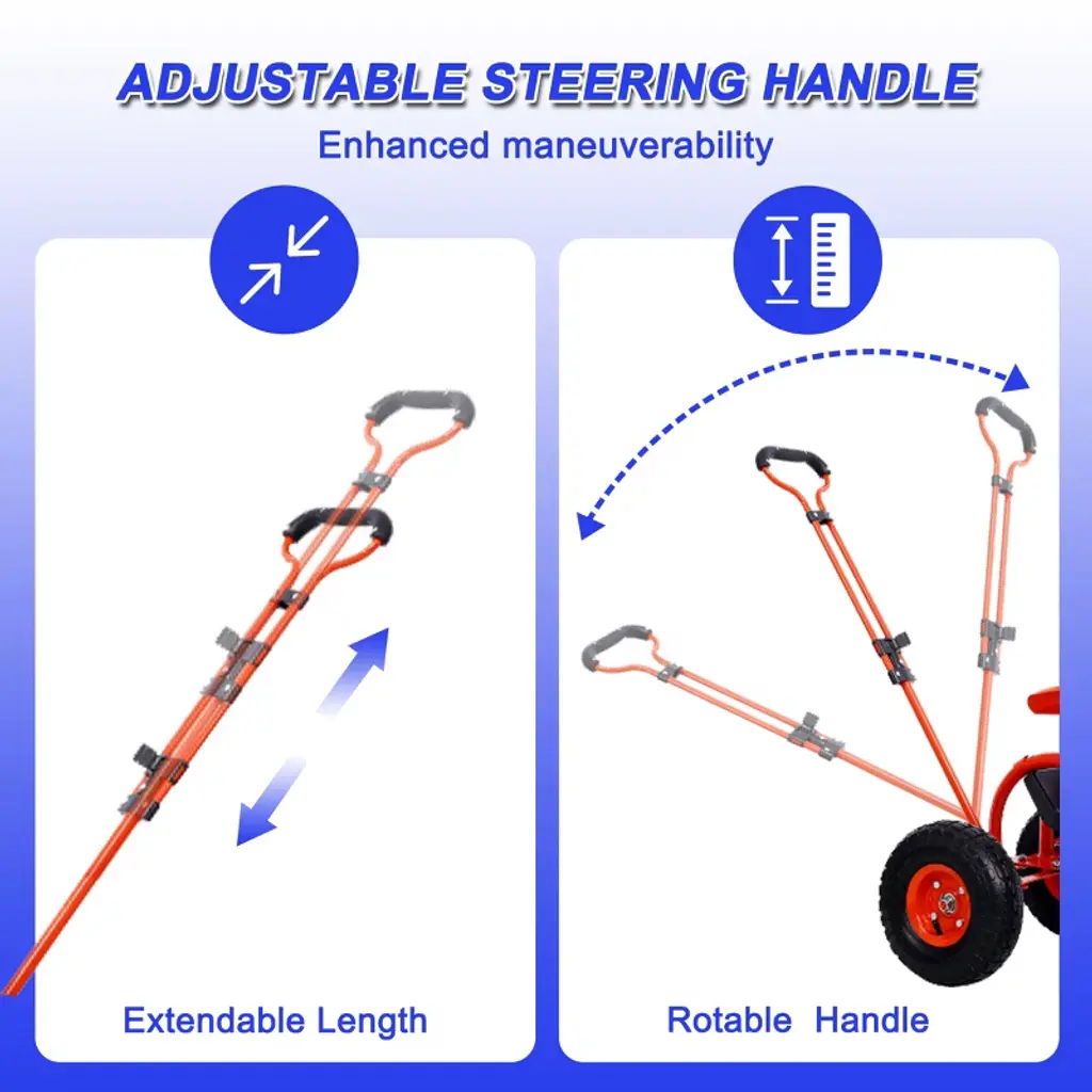 Garden Cart Rolling Scooter, Adjustable Height Heavy Duty Scooter, Rolling Garden Cart with 4 Wheels and Extendable Handle, Garden Stool Cart with 360-Degree Seat and Tool Tray (Red)