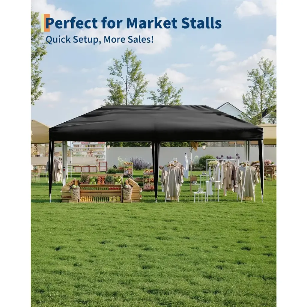 10x20 FT Pop Up Canopy with 6 Removable Sidewalls, Heavy Duty Outdoor Canopy Tent 3 Adjustable Height Gazebo for Parties, Garden - Black