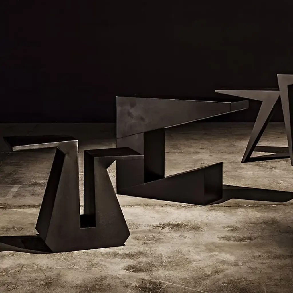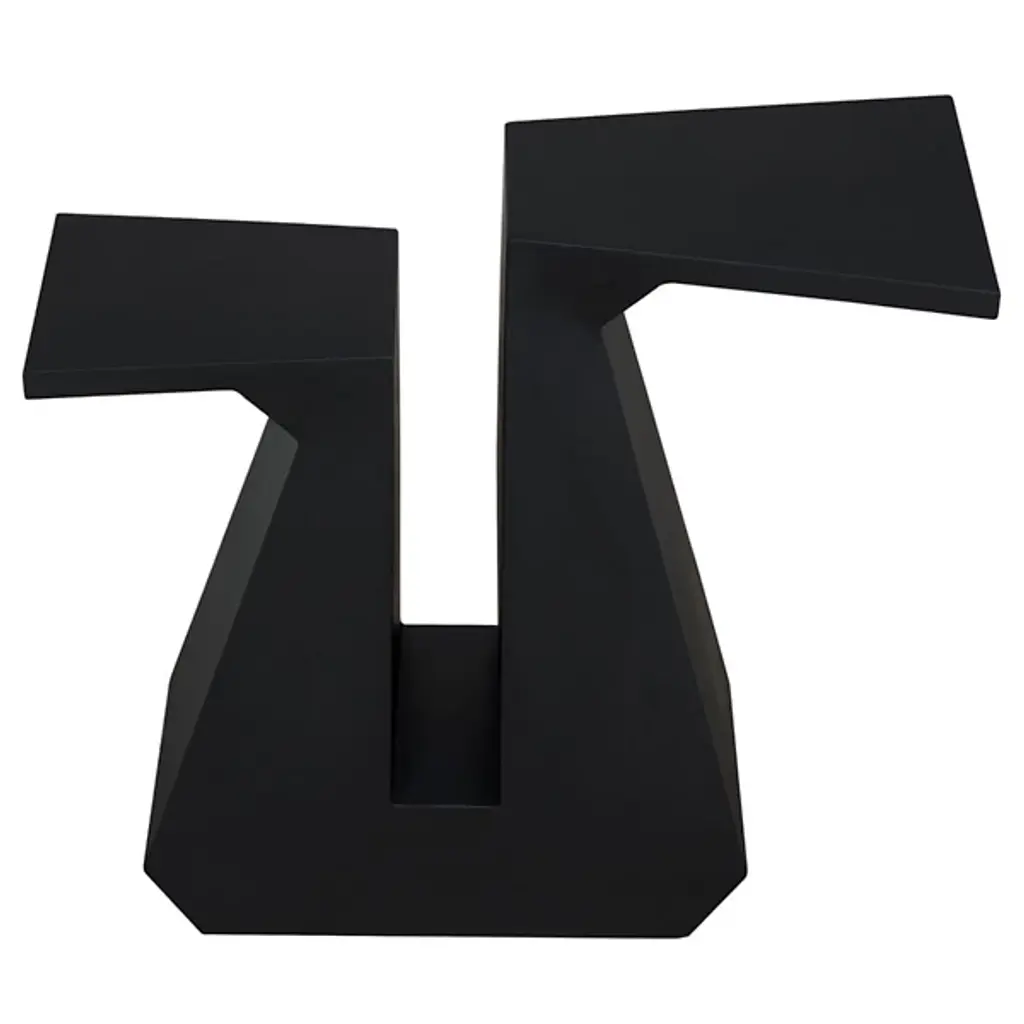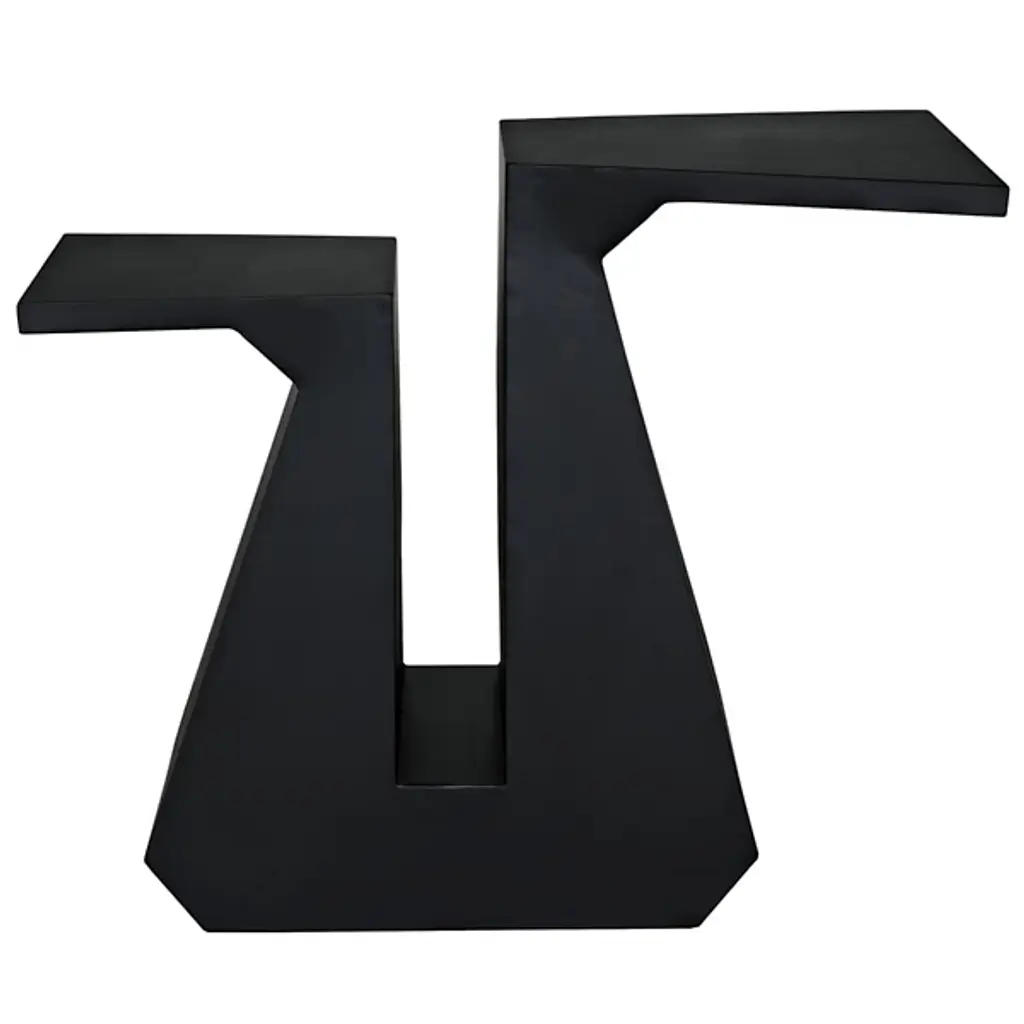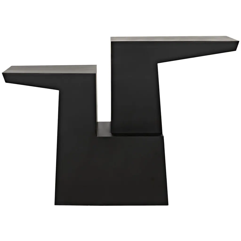The Gaston Console/Side Table from Noir embodies industrial minimalism through its Z-shaped steel form that creates dynamic angles from every viewpoint. The matte black finish unifies each geometric plane while emphasizing the material's inherent strength and structural integrity. Angular cuts create dramatic shadow lines that shift throughout the day, elevating this functional piece into a kinetic sculpture. This approach to metalwork demonstrates how simple geometric forms can achieve maximum visual impact through careful attention to proportion and surface treatment.