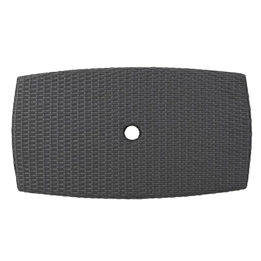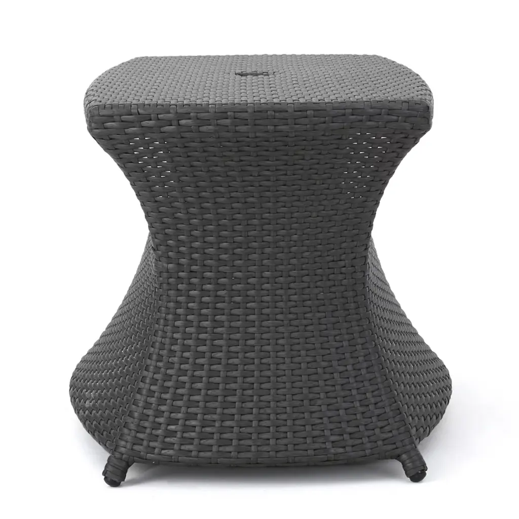 Gdfstudio Prazen Outdoor Wicker Side Table With Umbrella Hole, Gray