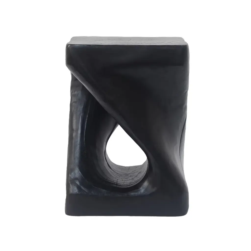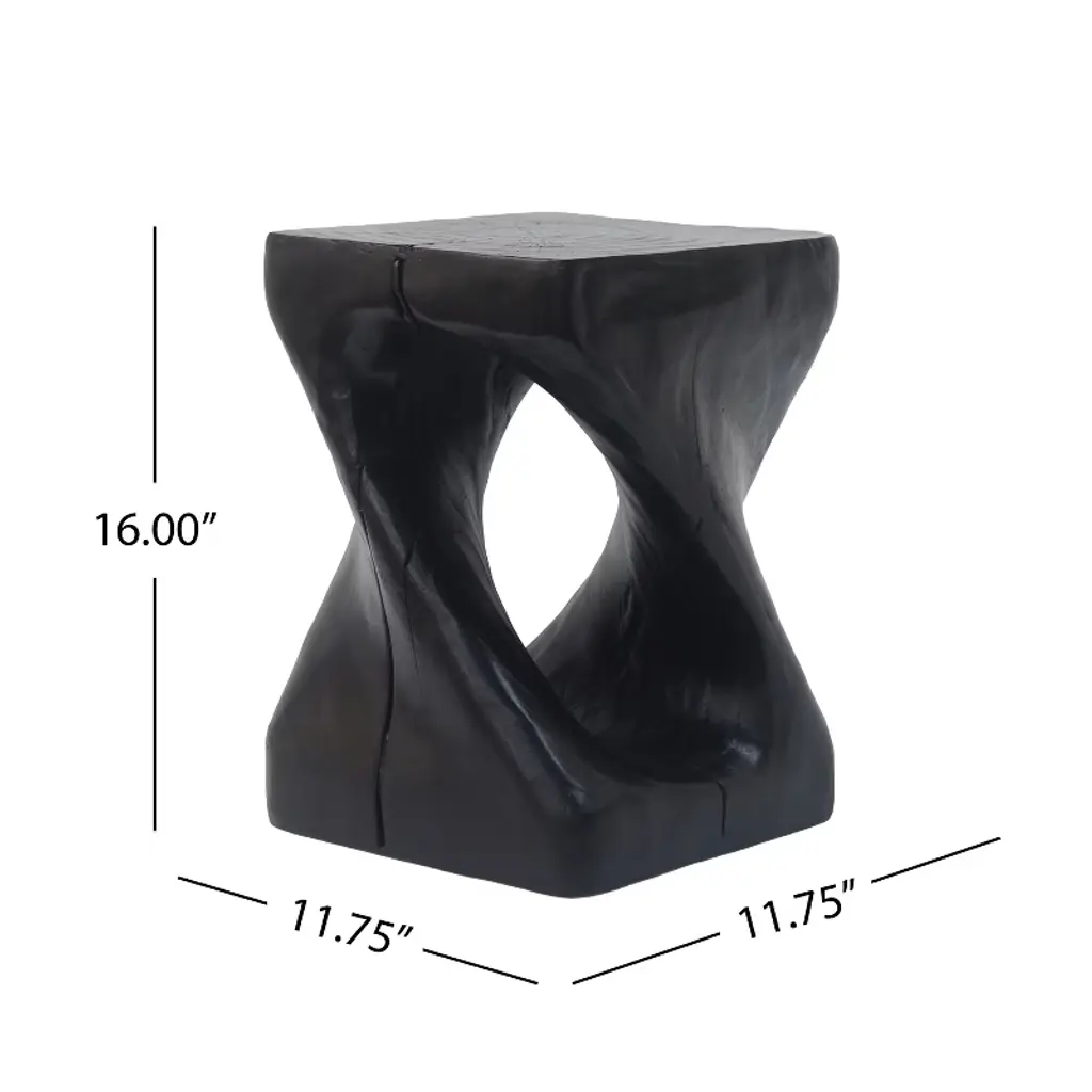 Gdfstudio Verde Outdoor Lightweight Concrete Twist Design Wood Grain Texture Side Table, Black