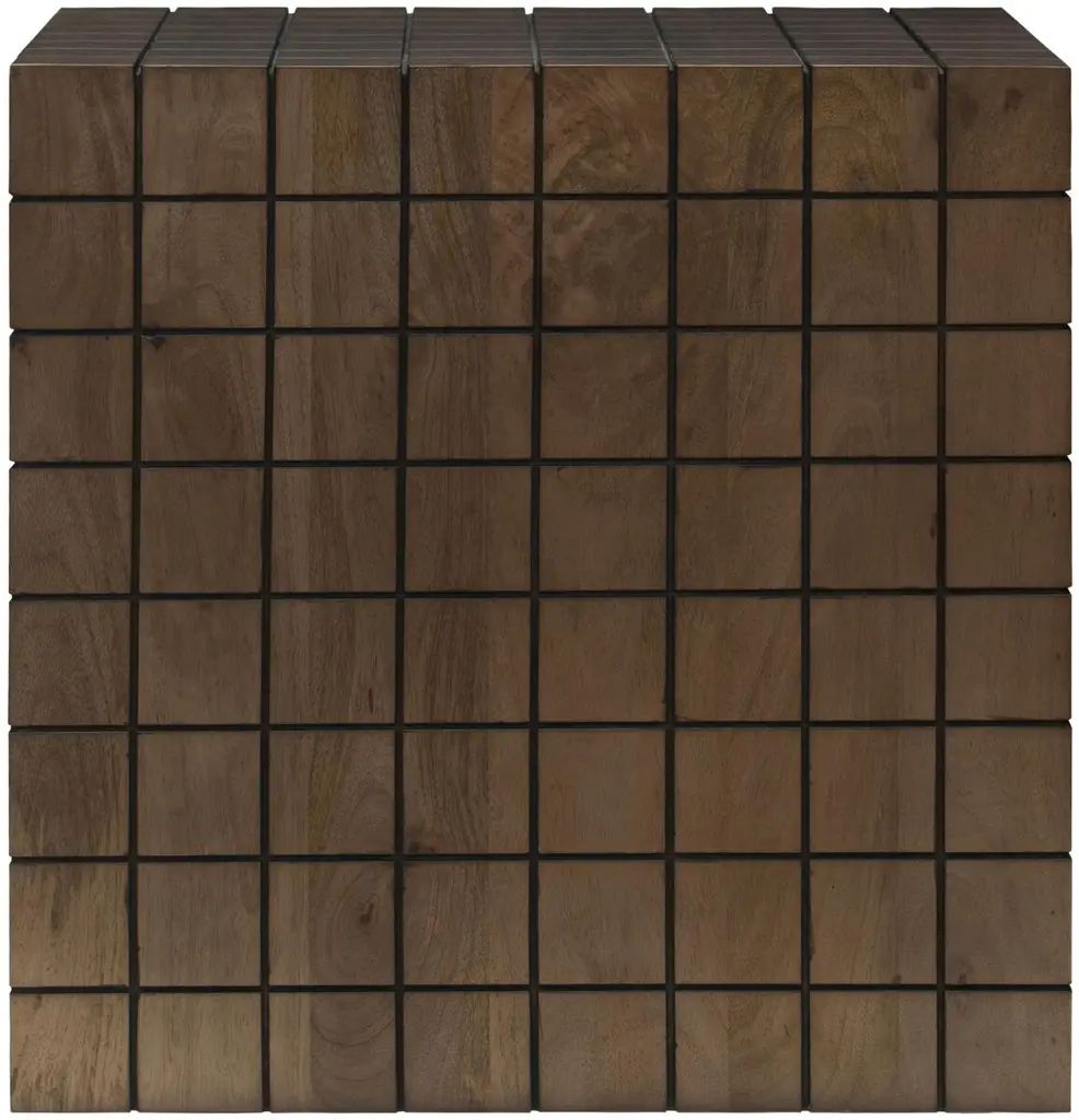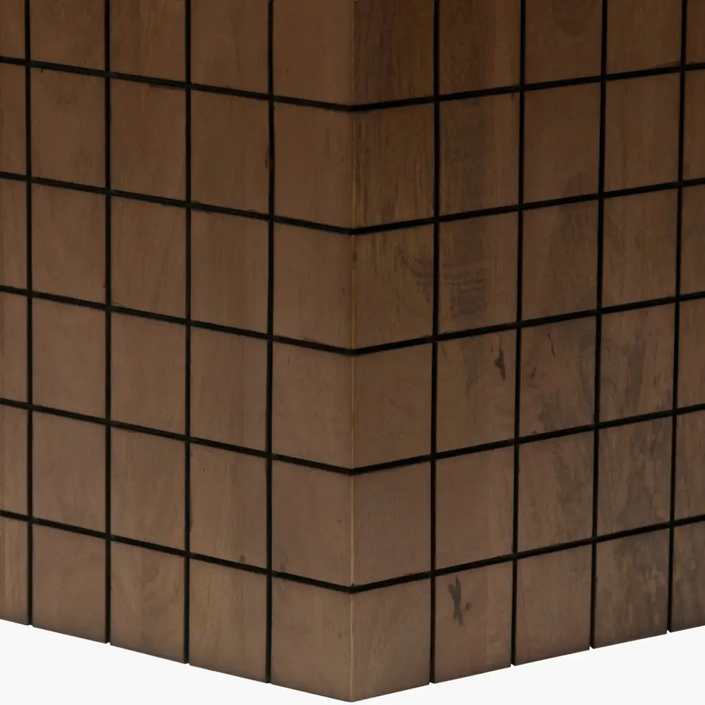 A stunning fusion of minimalist design and exotic elegance, the Geldrey End Table from Surya brings a touch of worldly charm to your home. Handmade in India, this beautiful end table is crafted from exquisite mango wood, celebrated for its rich character and unique grain. The sleek, modern silhouette is enhanced by a hand-carved grid pattern, adding a layer of sophisticated, textural detail. A fusion of simple form and artisanal detail, it’s a beautiful and functional accent for any living space. Highlights: