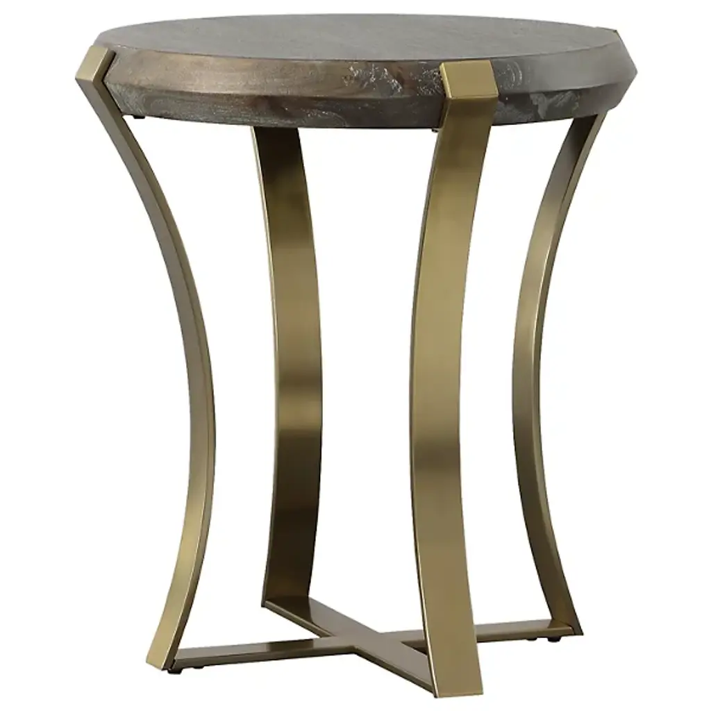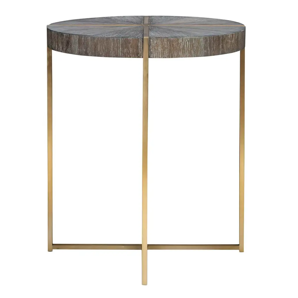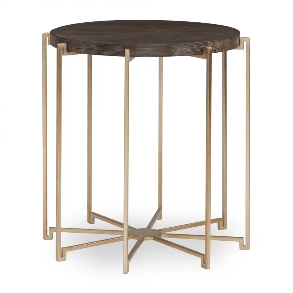 Gemini Side Table With Oak Structure, Dekton Top And Smoke Brass Details