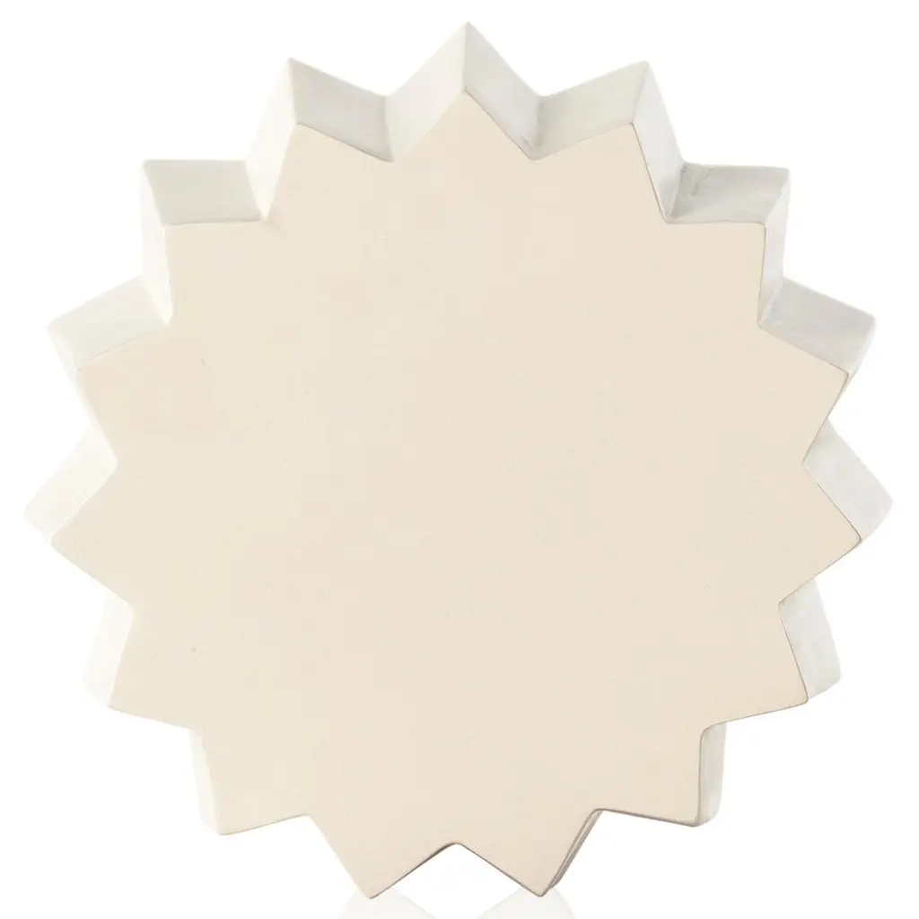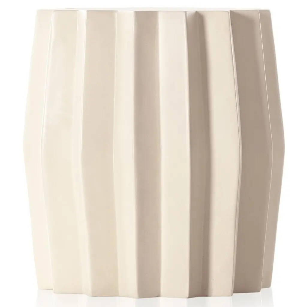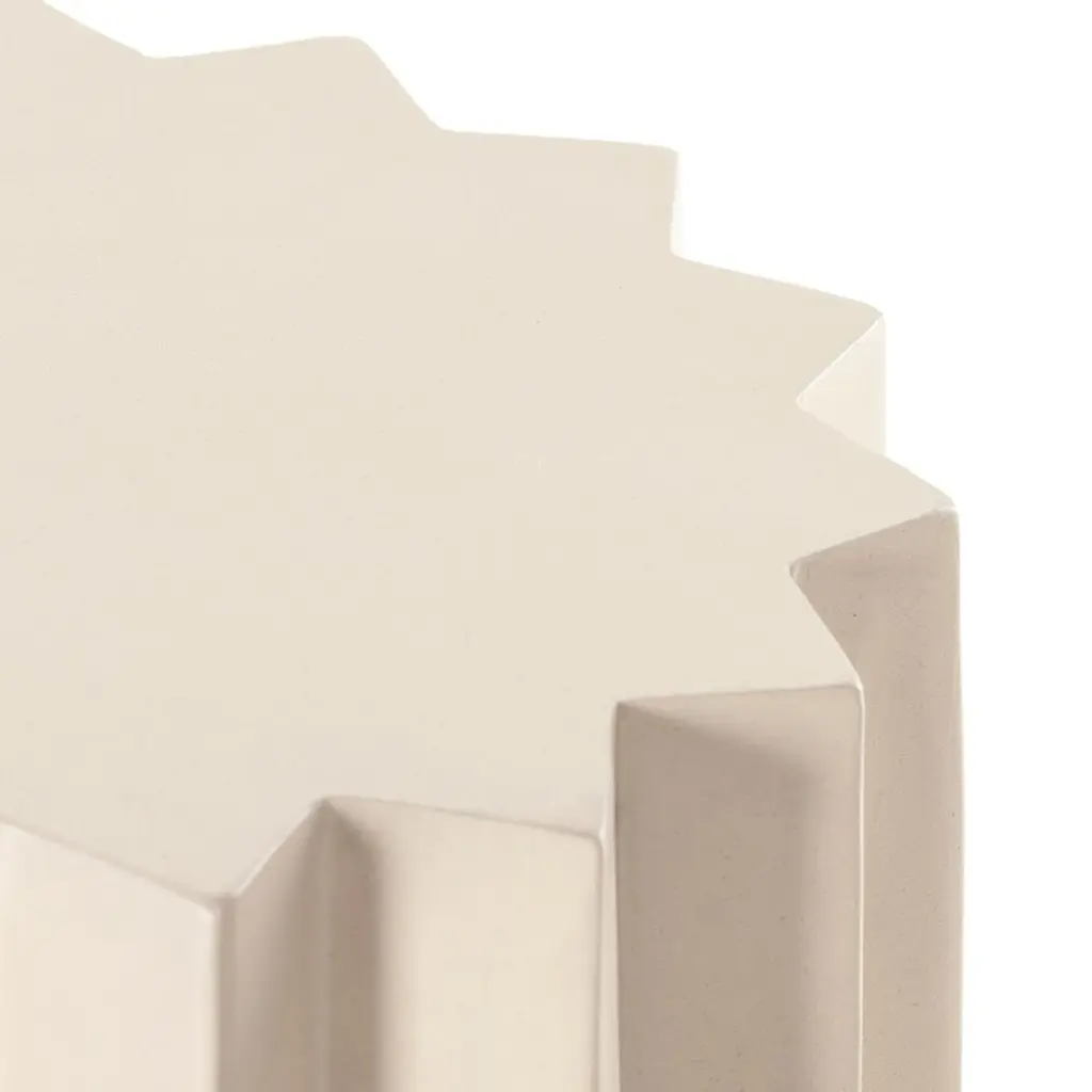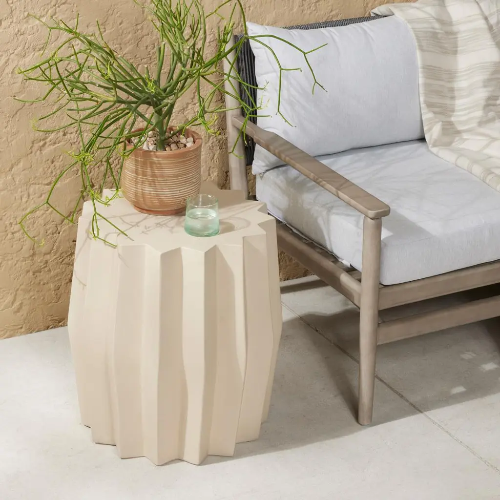 Fluted edges give the Gemma end table its striking starburst shape. Made from concrete and finished in parchment white, this versatile end table enlivens any indoor or outdoor space.