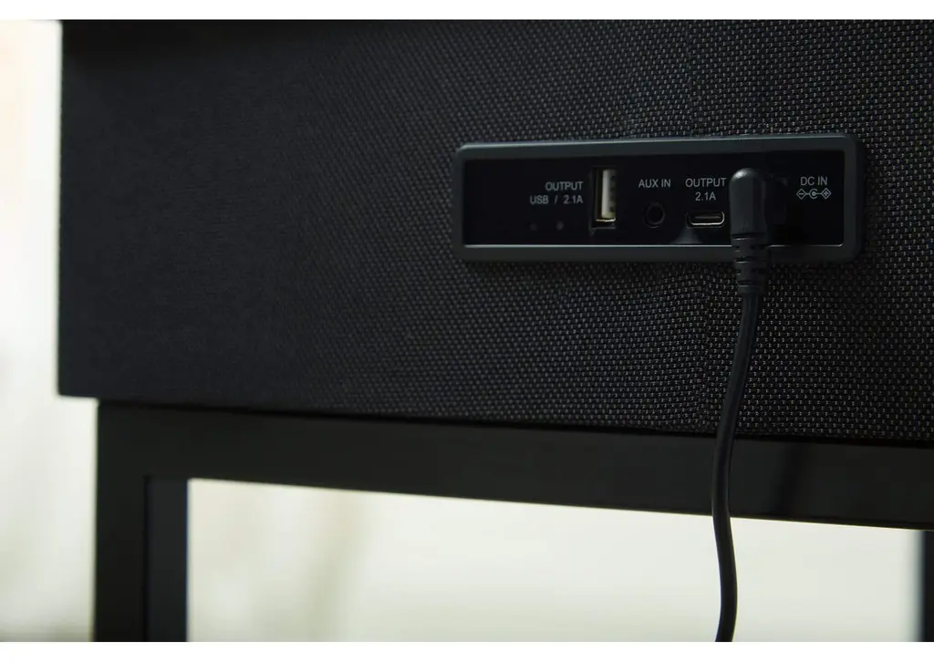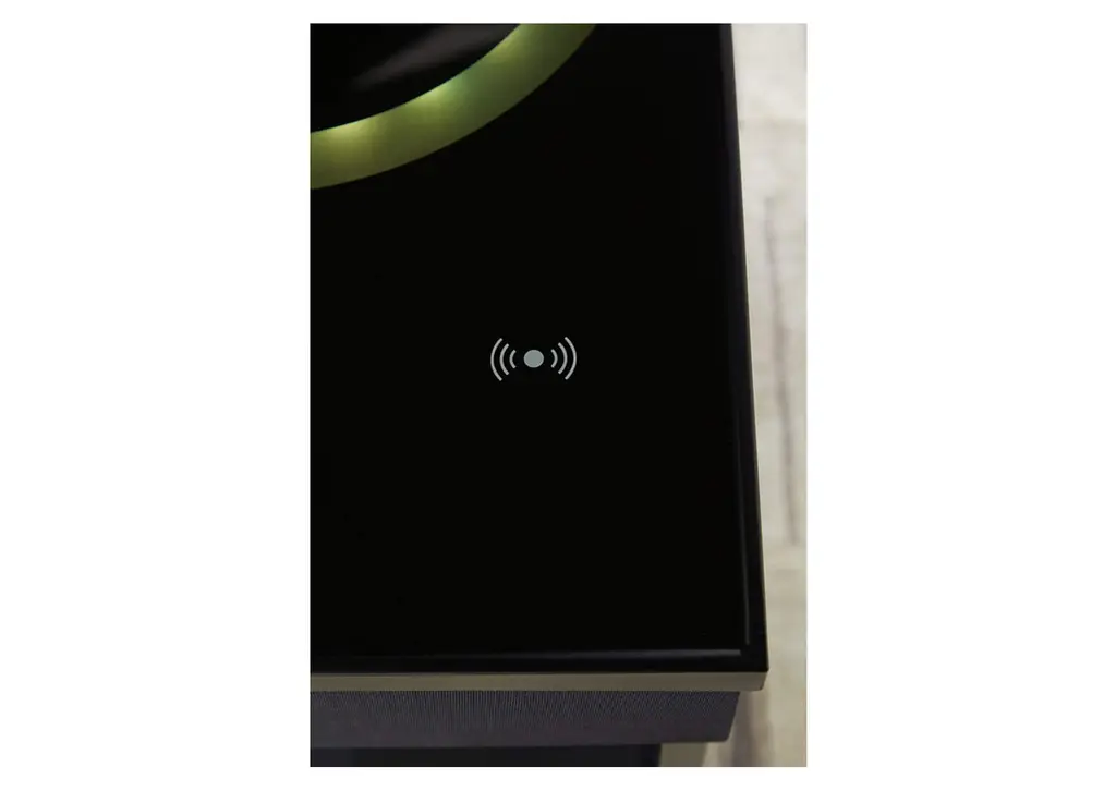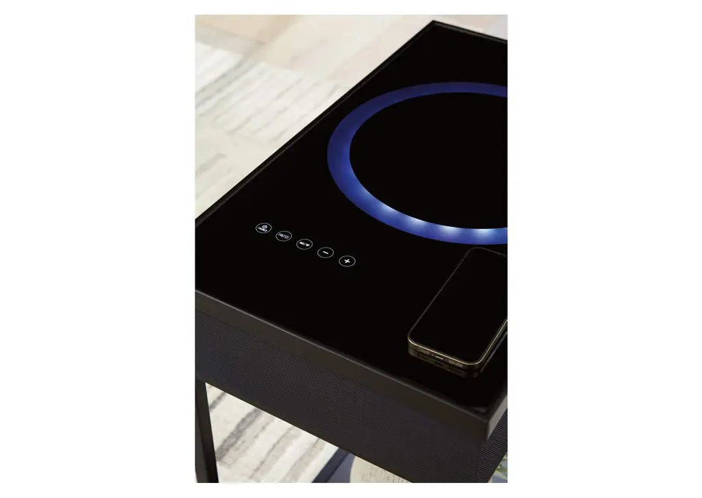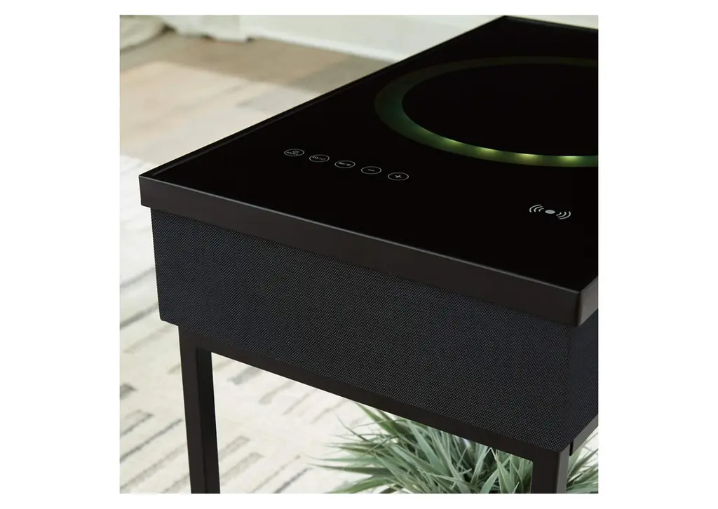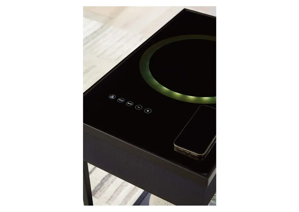 From cleaning day to game night, you love crafting the perfect ambiance with music. With the Gemmet accent table’s built-in audio capabilities, setting the mood is easier than ever. Connect wirelessly to the speakers while you keep devices ready to go with wireless and USB charging options. A contemporary design in a sleek black keeps the piece as fashionable as it is functional. Weight 42.000 lbs. (18.9kgs.)