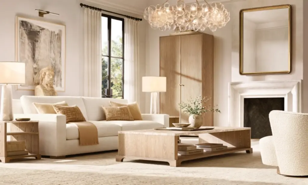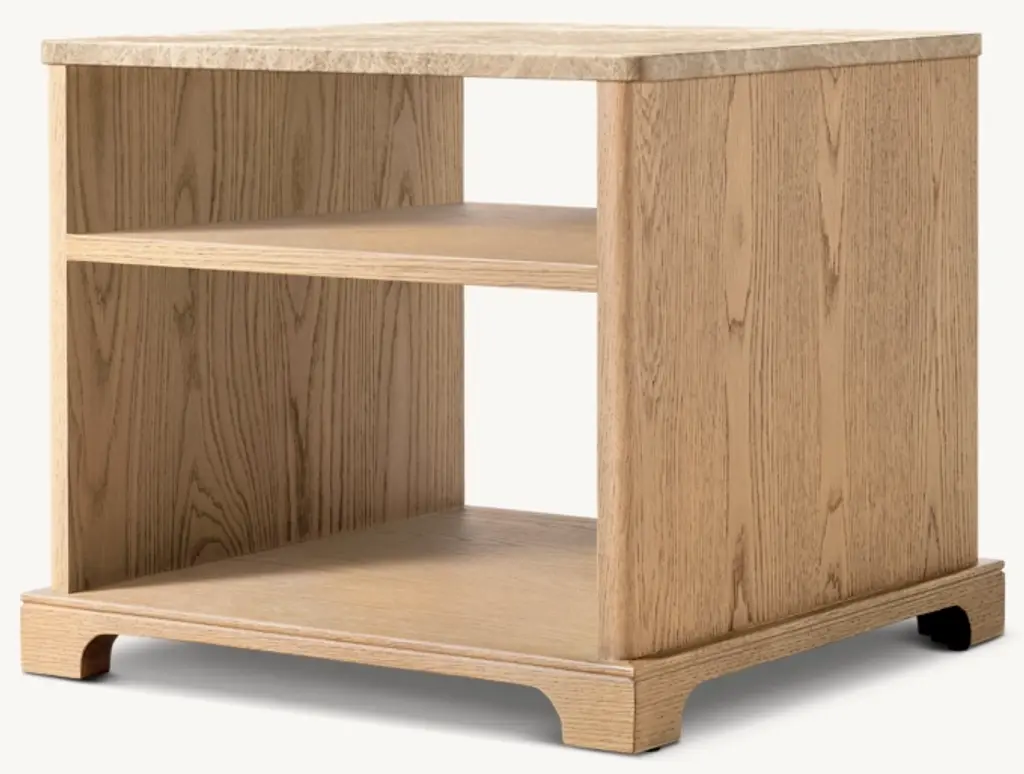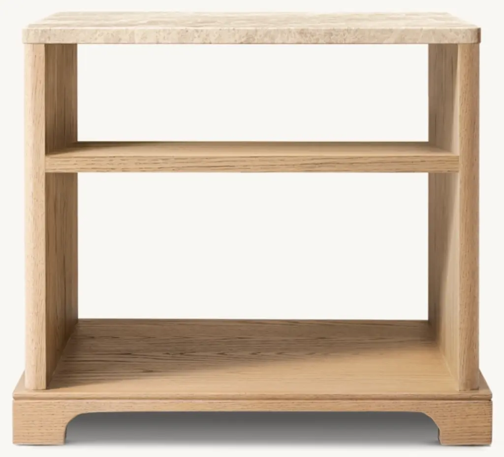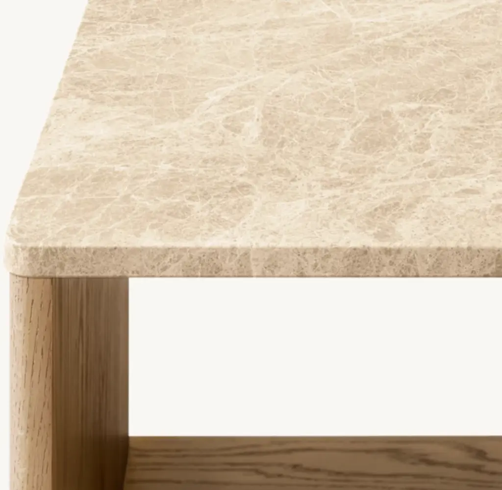Handcrafted of wire-brushed European white oak, Genevieve's graceful silhouette is inspired by classic mid-19th-century French designs. Topped with richly veined Emperador marble, the table's fine beading and curved bracket feet offer an elegant complement to the geometric profile. SHOP THE ENTIRE COLLECTION