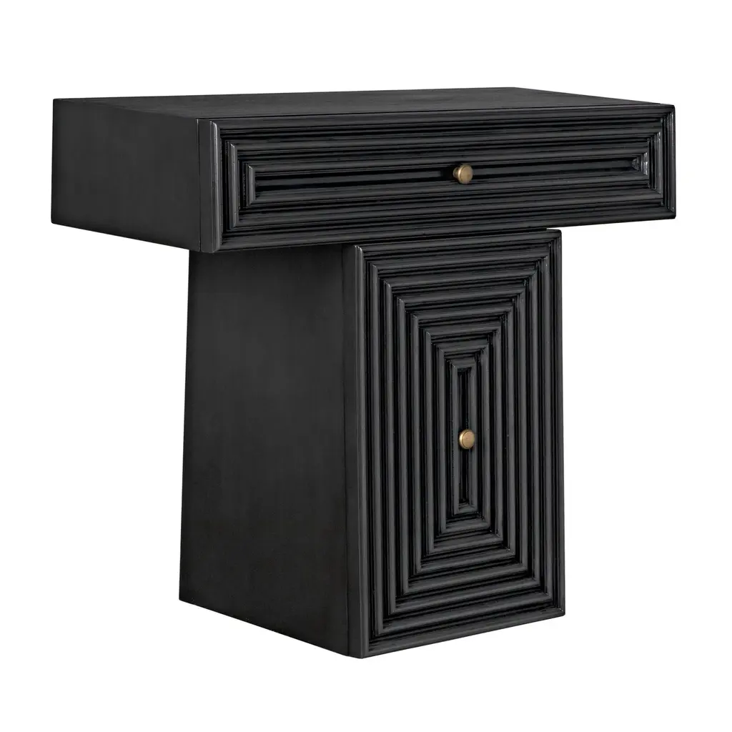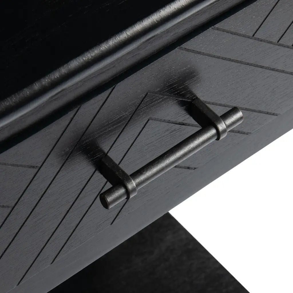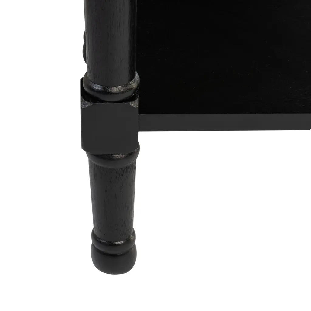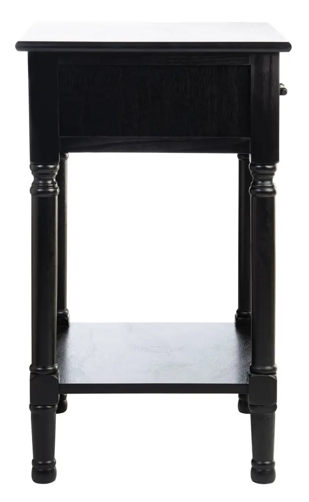 Turned legs and a chevron pattern on the drawer front give this accent table timeless elegance. The bottom shelf is ideal for stacking books or displaying a favorite object.