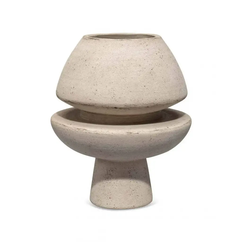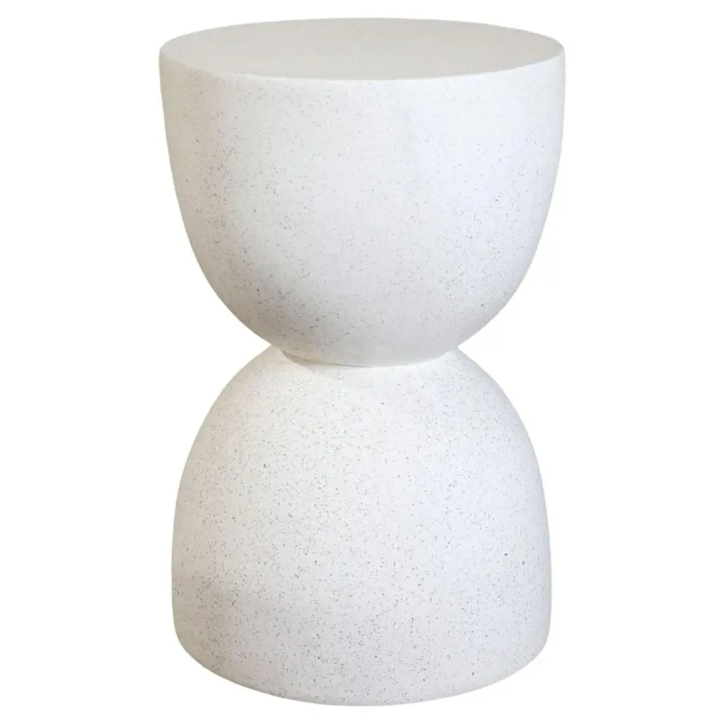 Geo is a collection of small sculptural tables generated by geometrical shapes, kept in balance thanks to the different colors of Pimar natural stone: beige, white and grey. Designed by Apospersano. Available in different models and sizes.