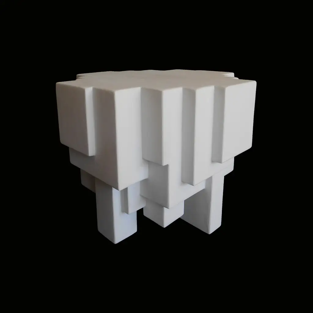Geo Small Side Table by Daniel Schneiger.Dim qwwwensions: D 51 x W 46 x H 41 cm.Materials: Wood and resin.Custom finishes available. Custom sizes available.Dan SchneigerAs an architect and artist, I’ve always been conscious of the symbiotic relationship between the two disciplines. Sensing a growing divide between how we design architecture and make art, I was compelled to make architecturally significant objects with my hands. My work is an exploration of the symbiosis between art and architecture and the tension between technology and handcraft.