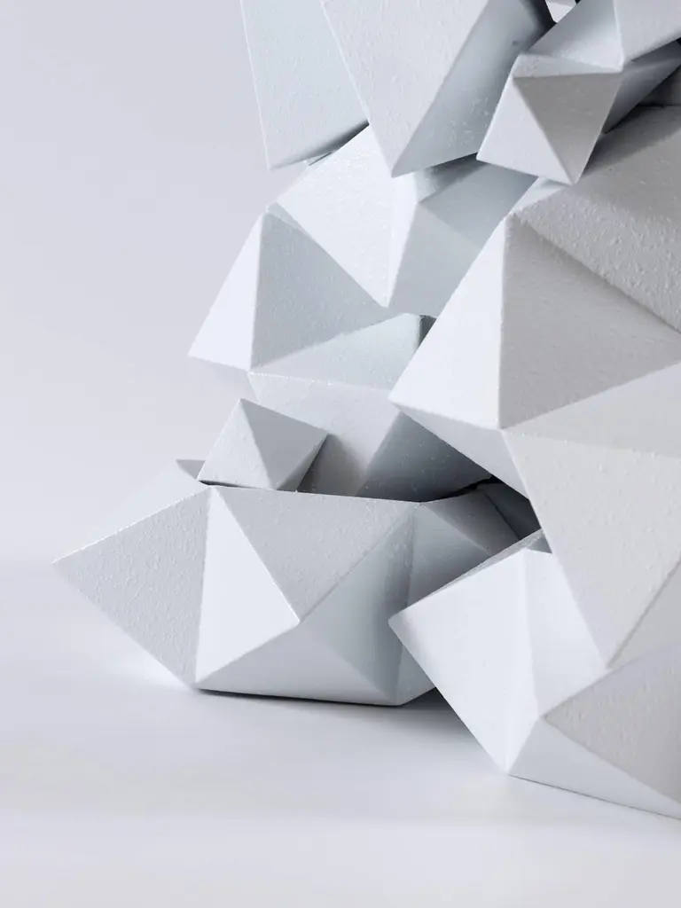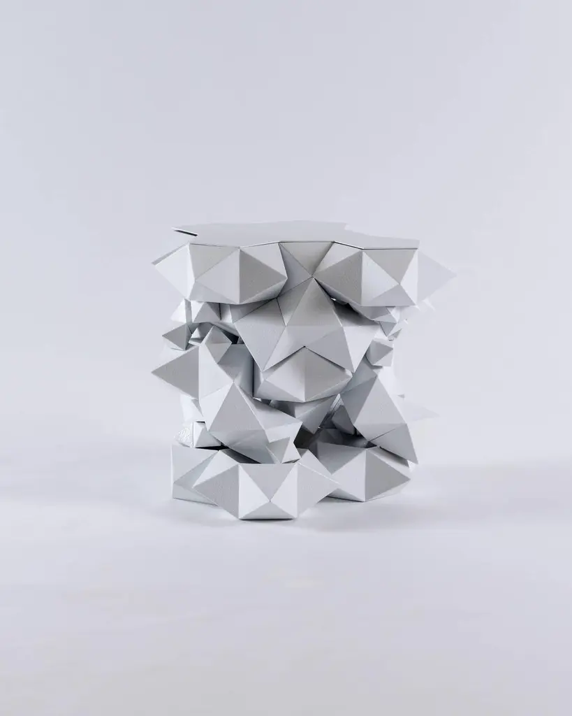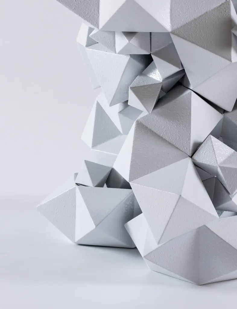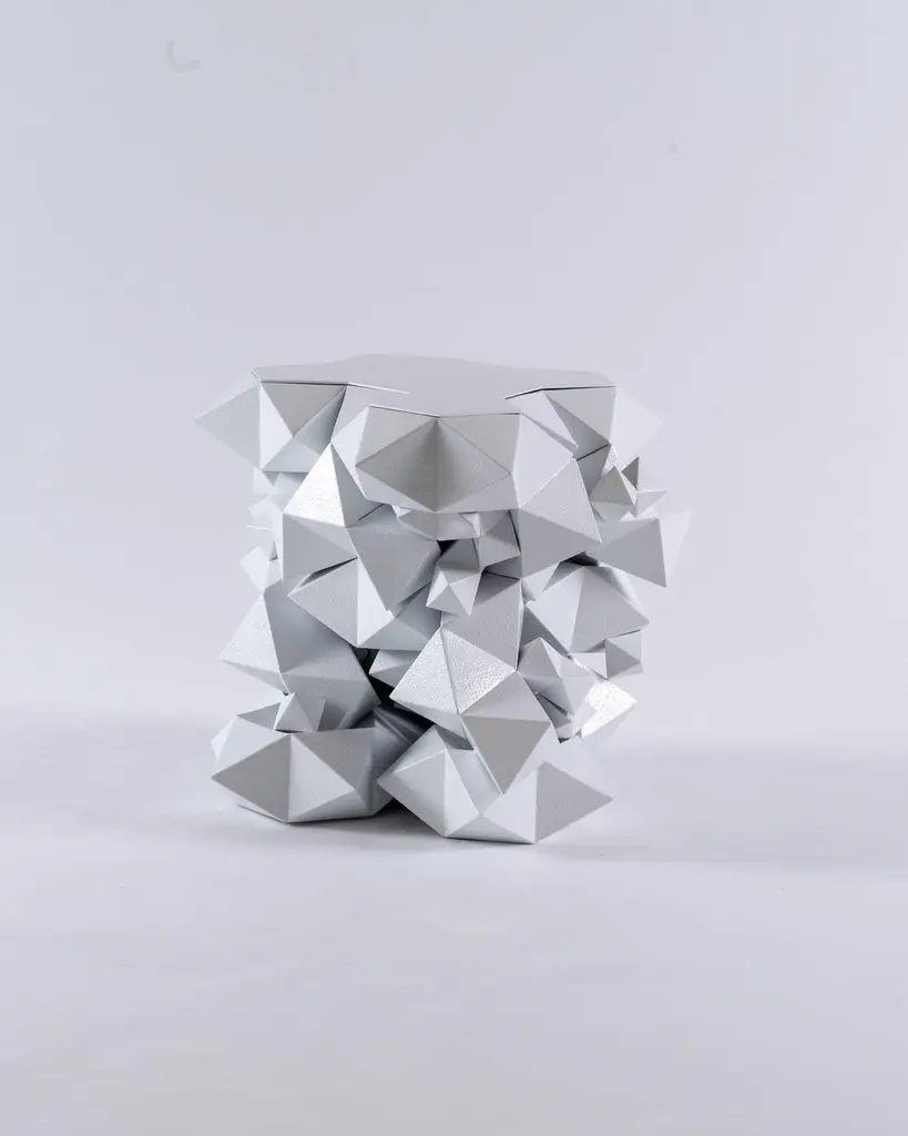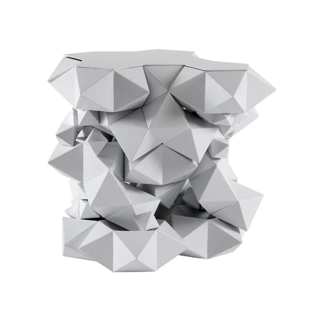 Geometric Primitives Side Table/end Table In Powder-Coated White Aluminum