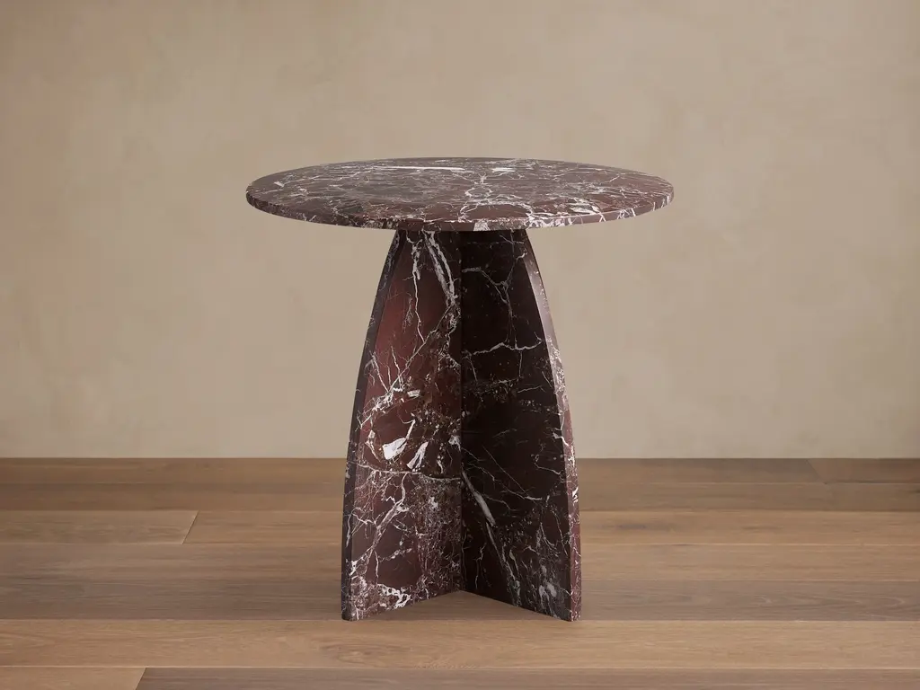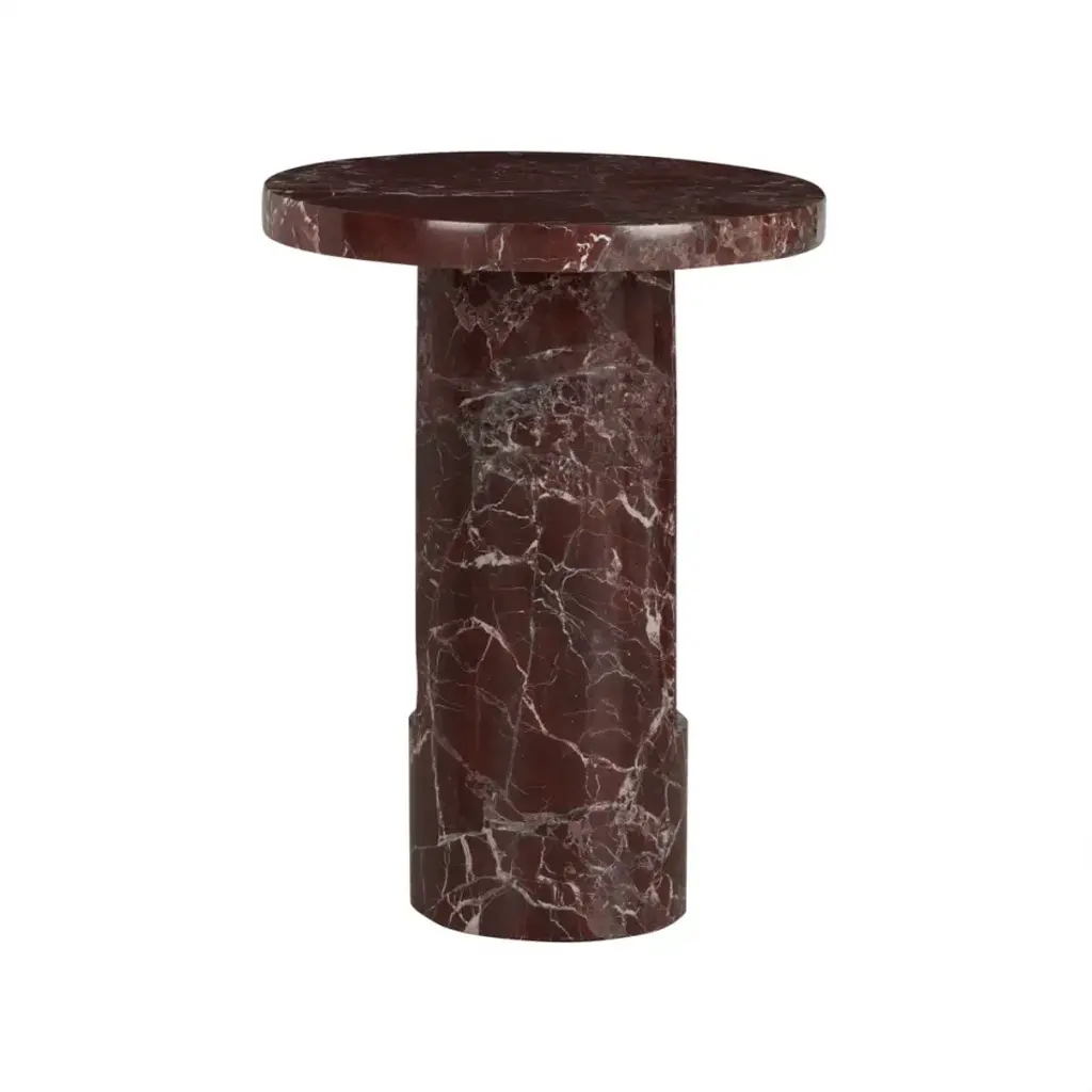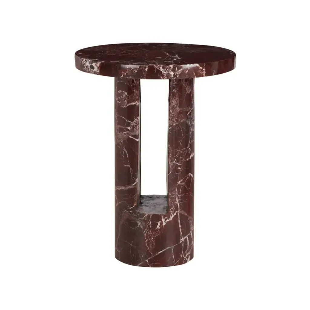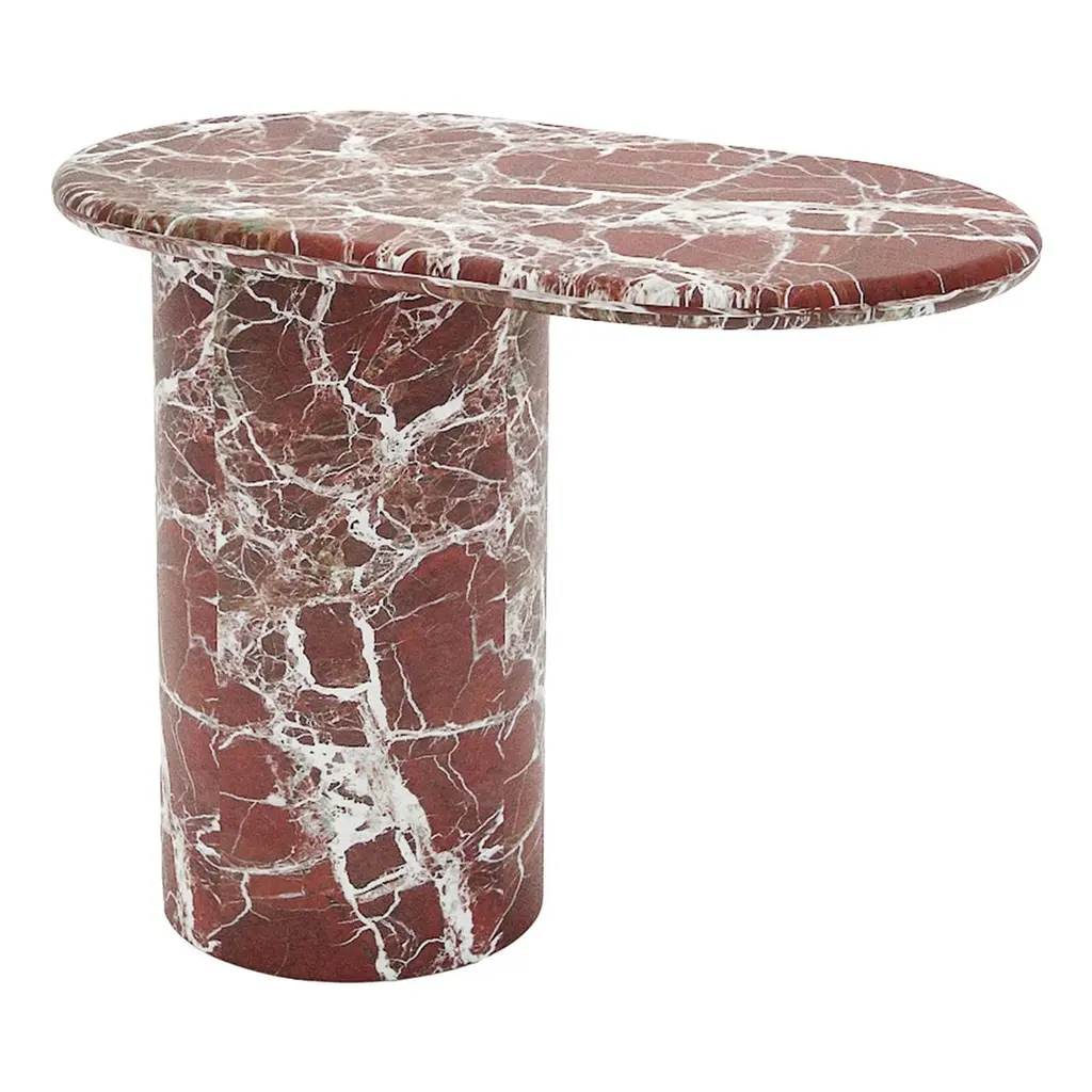 Refined and timeless, this sophisticated marble side table showcases natural veining and a sleek silhouette. It has a clean lines and luxurious finish.