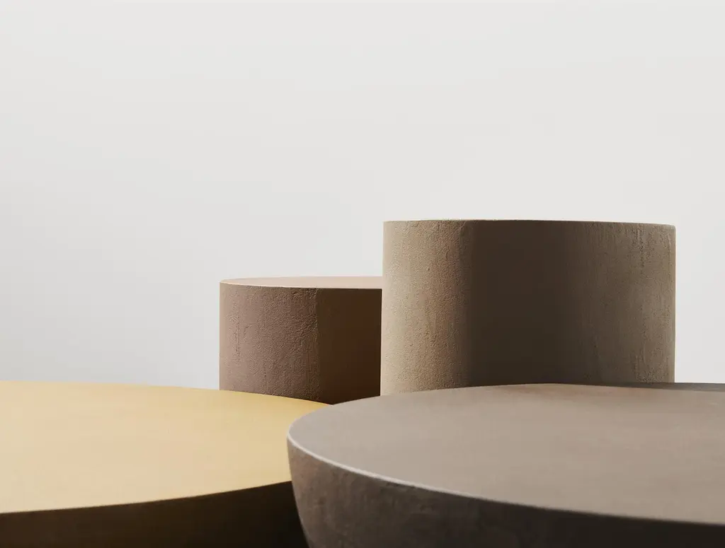 From the Japanese equilibrium, stability, Heiko calls to mind the shape of the tables, defined by curved lines, with a rounded base which seems to float on the surfaces. Simple geometries and full volumes are combined and superimposed, giving life to soft architectures in which every element coexists with the others. Four dimensions and three natural colours which remind us of the materiality of the earth, bringing the mind back to an oriental imagery. The collection is made up of side tables made of high-density polymer and finished with a clay layer. Matt stain-proof treatment. Available in four sizes and three colours: Ombra, Cassel or Siena.