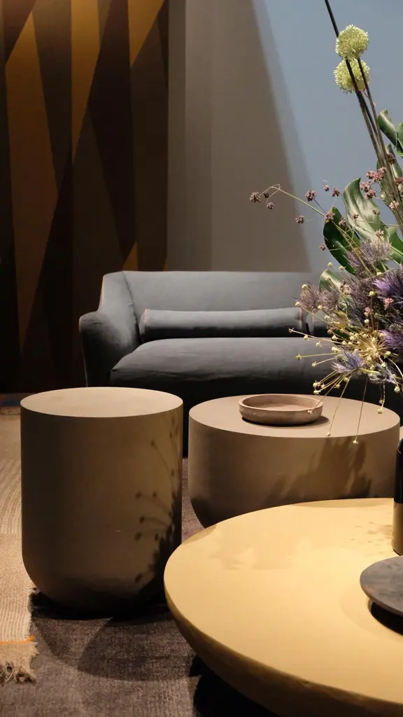 From the Japanese equilibrium, stability, Heiko calls to mind the shape of the tables, defined by curved lines, with a rounded base which seems to float on the surfaces. Simple geometries and full volumes are combined and superimposed, giving life to soft architectures in which every element coexists with the others. Four dimensions and three natural colours which remind us of the materiality of the earth, bringing the mind back to an oriental imagery. The collection is made up of side tables made of high-density polymer and finished with a clay layer. Matt stain-proof treatment. Available in four sizes and three colours: Ombra, Cassel or Siena.