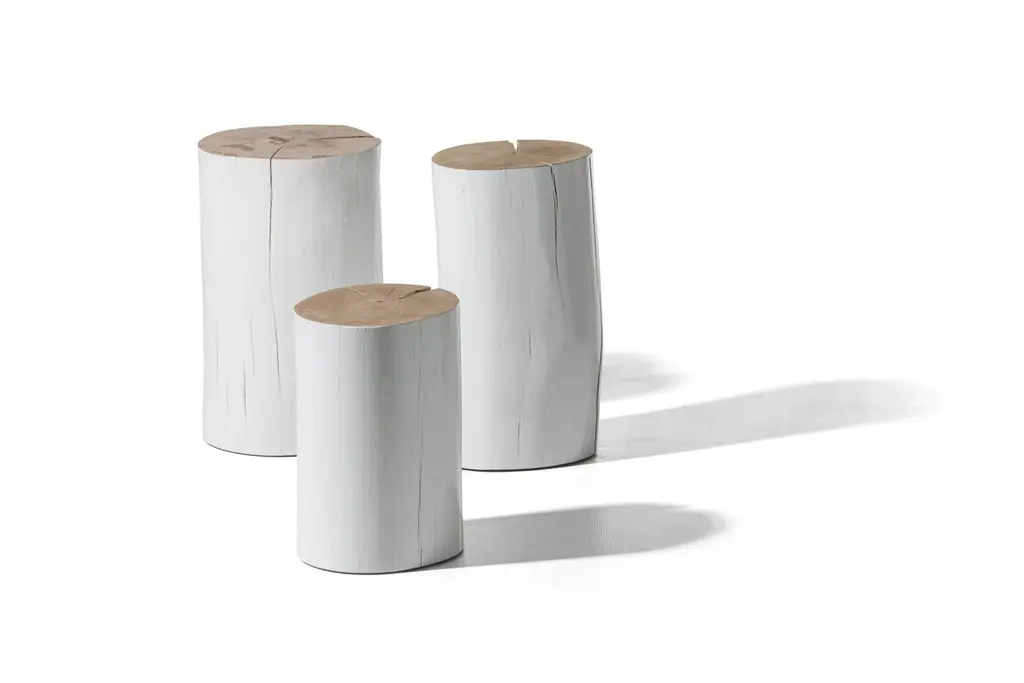 Gervasoni Small Log Sections Of Beech Trunk Side Table In White By Paola Navone
