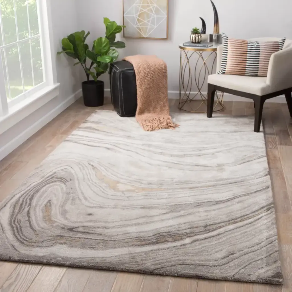 With a whimsical spirit and sophisticated flair, the Genesis collection features an assortment of hand-tufted rugs sure to liven any contemporary home. Chic gold and gray hues create an elegant marbled design on the Atha area rug. Lustrous viscose adds a striking sheen to the natural wool fibers for a final touch of glamour. Hand-Made Quality: hand tufted by artisans in India for notable durability and softnessLustrous Durability: made of 50% viscose and 50% wool for shimmering durabilityPlush Pile: plush pile highlights the soft textureCare and Cleaning: vacuum regularly without beater bar; professionally clean onlyRug Pad Recommended: provide extra cushioning and insulation with a felt rug pad Jaipur produces a extensive range of rugs, including flatweaves, naturals, transitional and modern collections. Design is a core passion for Jaipur and spills out in bold colors, distinctive styles, and fashion-forward trends.