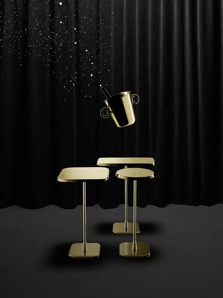 Round table in stainless steelFor the interior design of the Dutch national Opera and ballet Hutten designed these simple yet elegant and very useful side tables.Material:Stainless steel with pvd treatment stainless steel with pvd treatment.