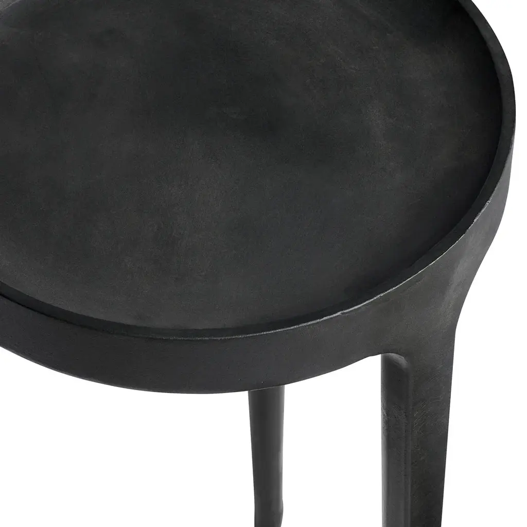 Ghost Side Table is a new companion to the Ghost Coffee Table. Cast in aluminium with three pointed legs and a tabletop with a groove in the outline the side table is high but compact in size making it suitable for any interior space. The table is taken directly from the mould without polishing, which gives it a unique rough surface with the texture of the mold. The raw table is powder-coated. The hand-painted finish, results in a unique, beautiful and distinct surface, with alternation between a matte and a reflective finish.